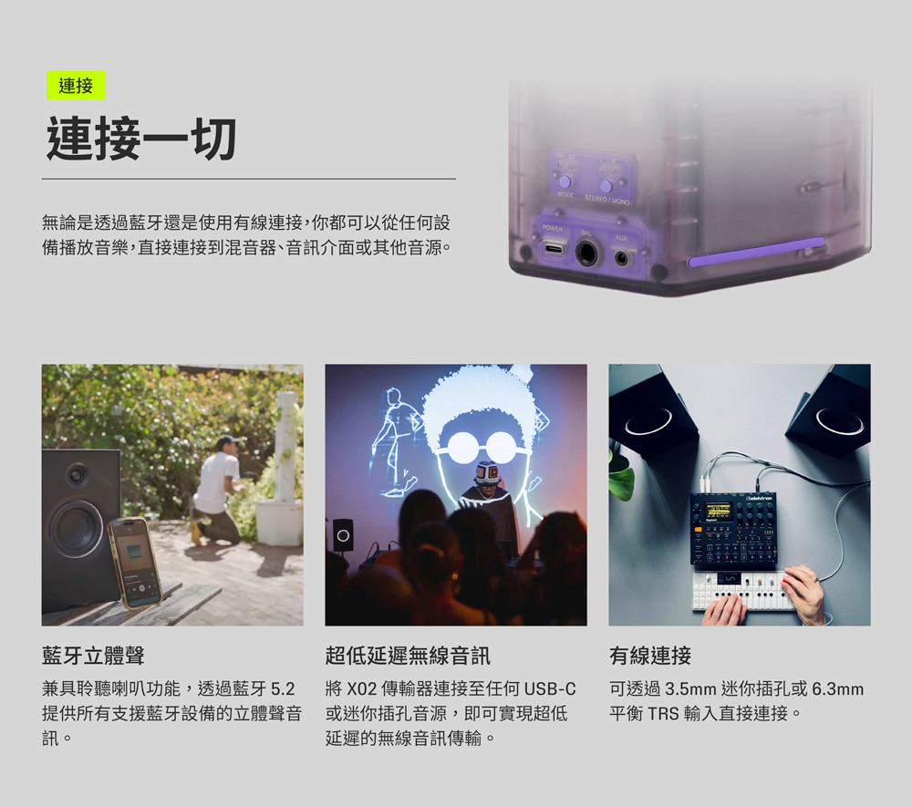 藍牙、 AUX IN、WIFI 、USB 多元連接選項( WIFI 需額外購置 X02 發射器 )