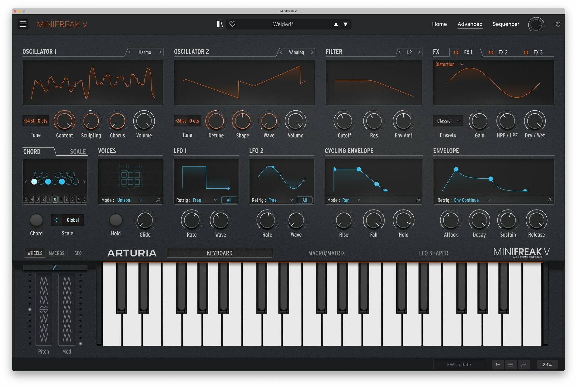 MiniFreak V 是一套實驗性的虛擬合成器軟體,完美融合了數位的音色及模擬類比的濾波器。結合了千變萬化的音色控制,不論是甜美的合成器音色還是混亂的噪音,一切都任您掌控。一但進入 MiniFreak V ,您能立即擁有超過 250 種原廠預設音色,包括一系列聲音設計大師所設計的獨特聲音。