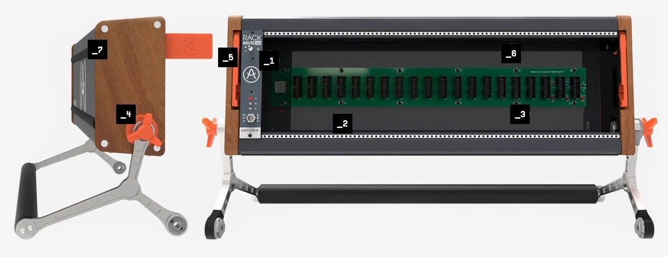 Link 系統和智能手柄,可將 MiniBrute 2/2S 或另一個 RackBrute 單元以不同配置固定