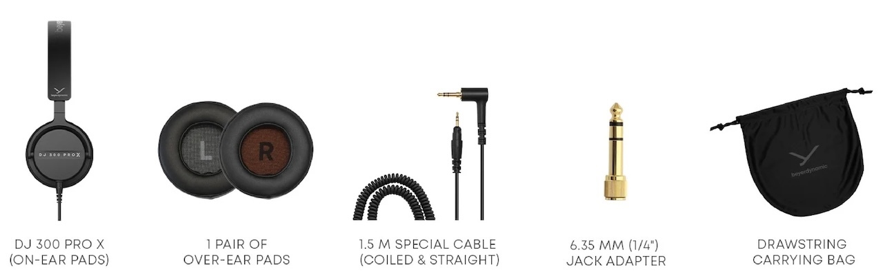 隨附配件:兩組耳墊、耳機線、1/4 吋轉接頭、收納袋
