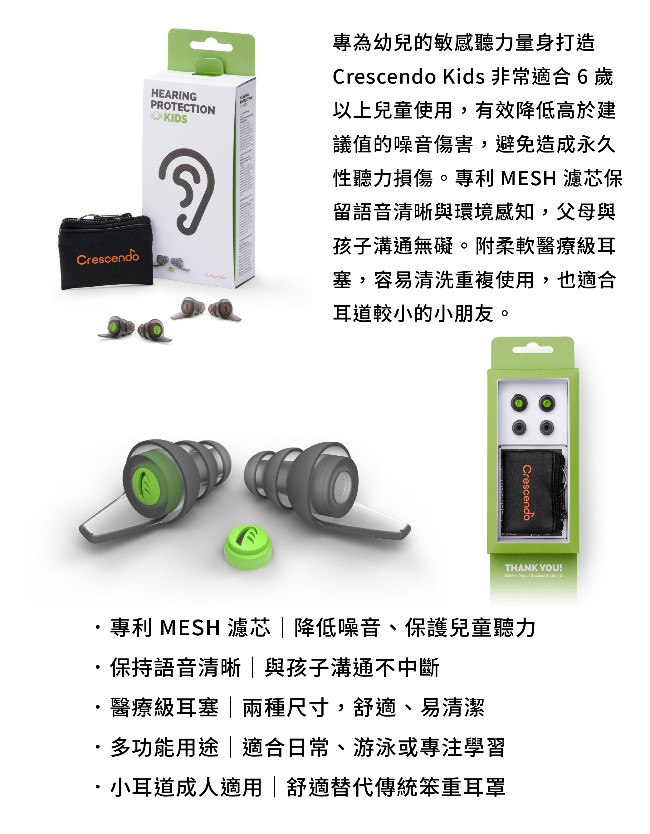 專利 MESH 濾芯 | 降低噪音、保護兒童聽力