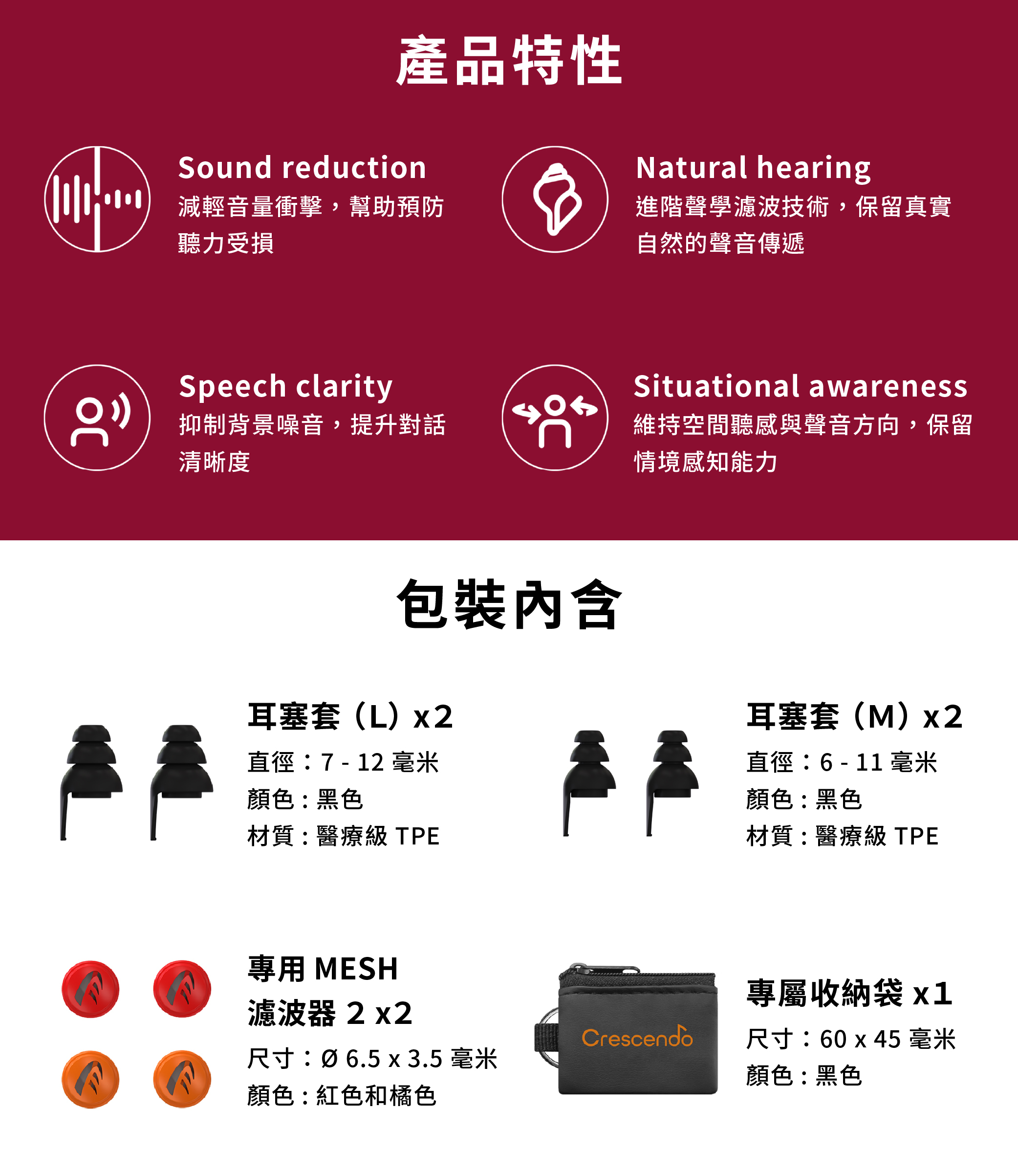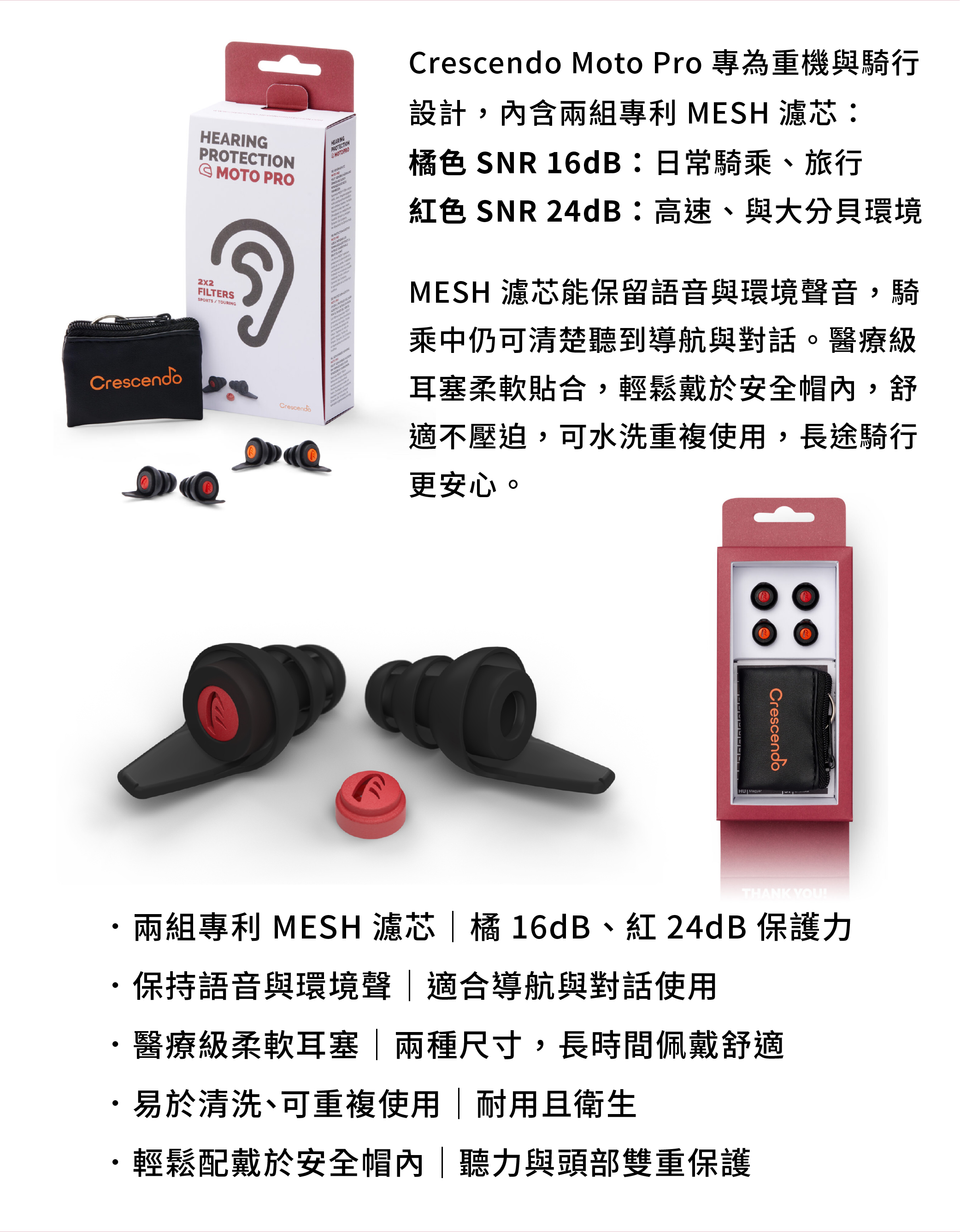 兩組專利 MESH 濾芯 | 橘 16dB、紅 24dB 保護力