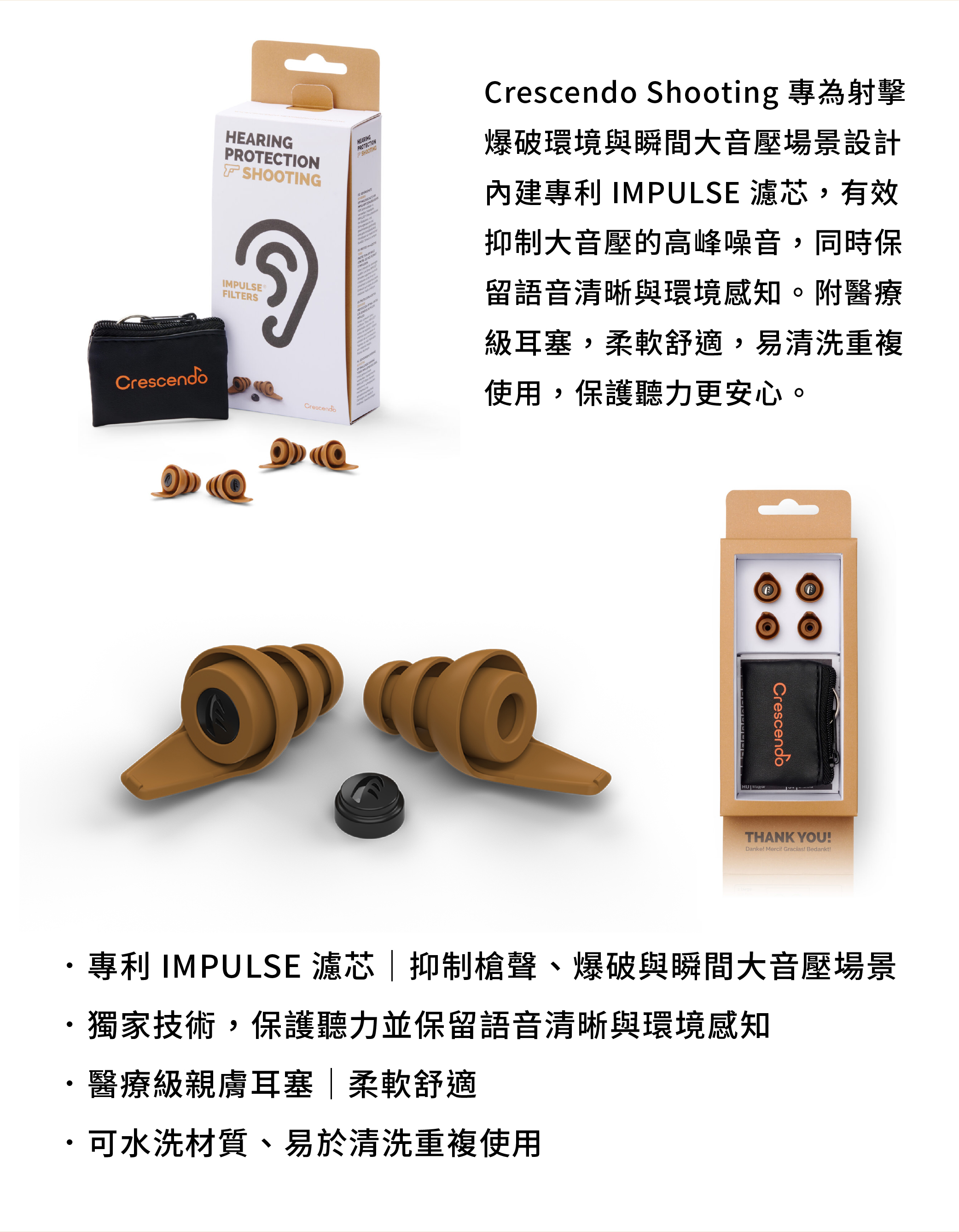 專利 IMPULSE 濾芯 | 抑制槍聲、爆破與瞬間大音壓場景