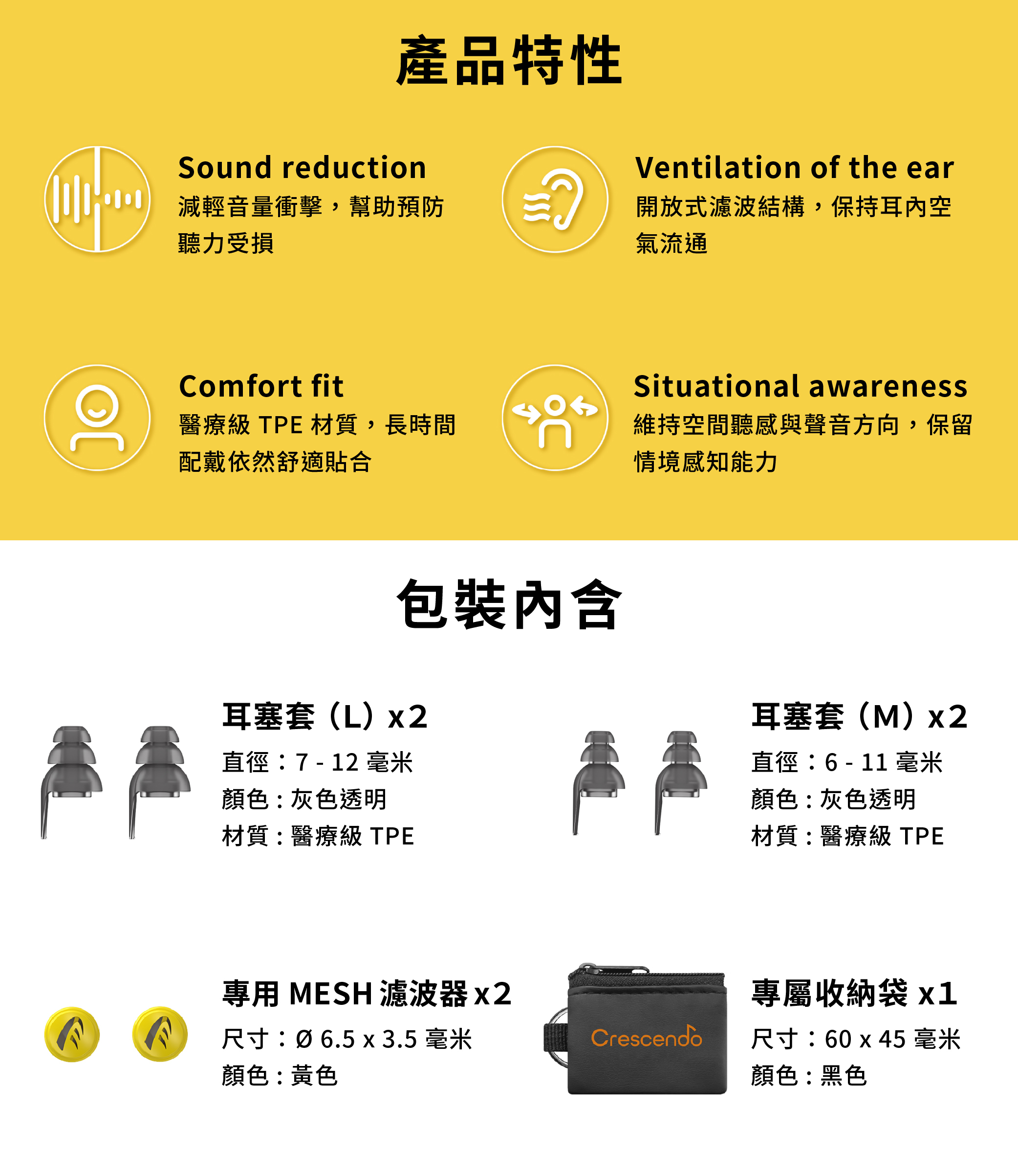 醫療級耳塞 | 兩種尺寸,柔軟貼合、易於清潔