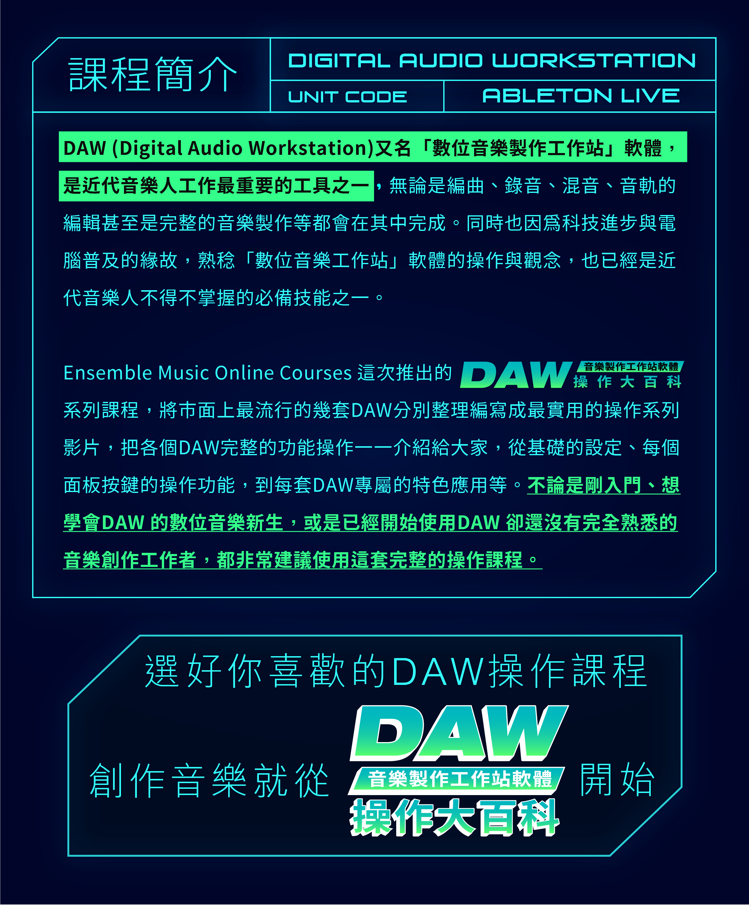 揚聲堡音樂線上課程 - DAW音樂製作工作站軟體|操作大百科 : Ableton Live 篇 (實體卡)