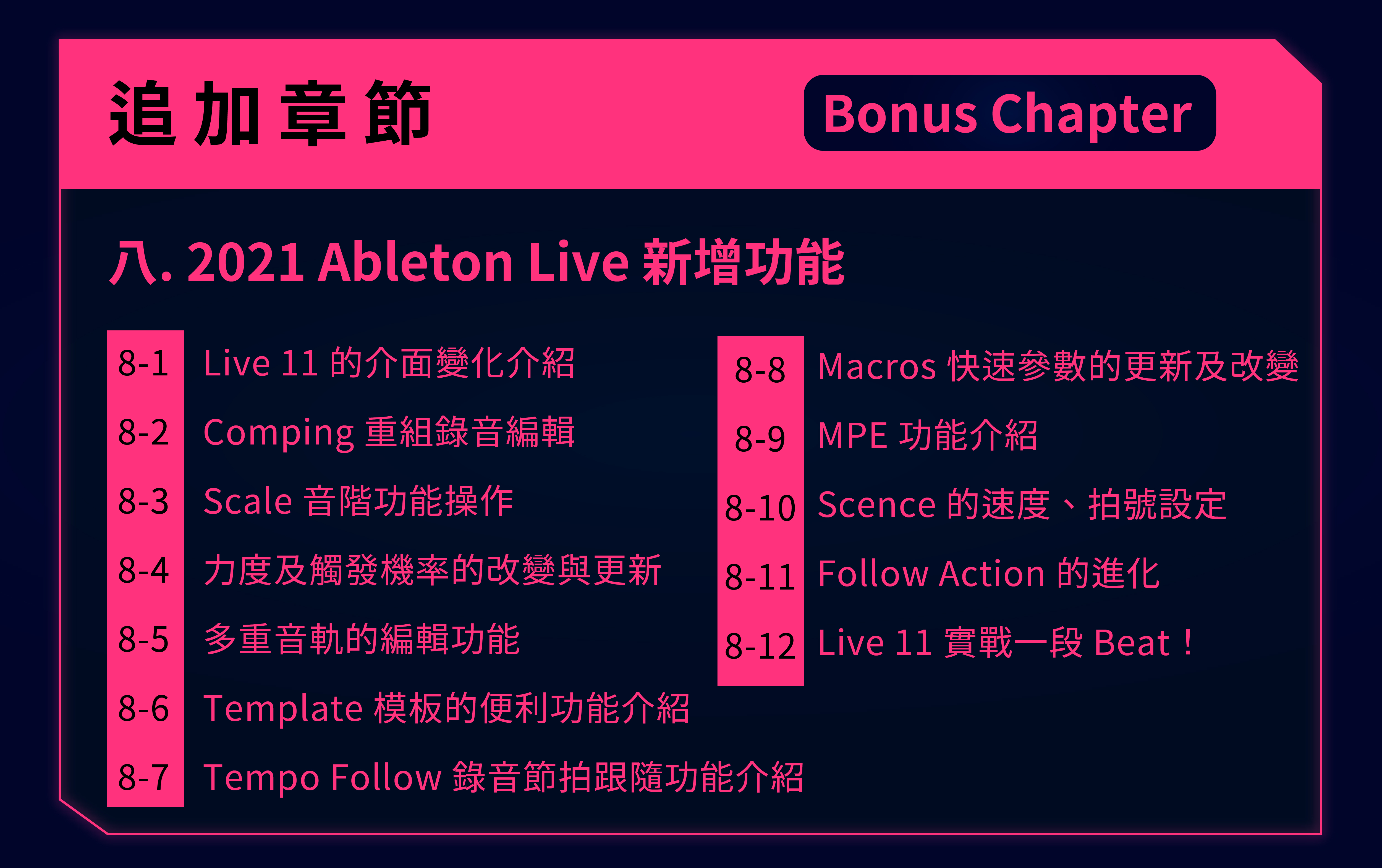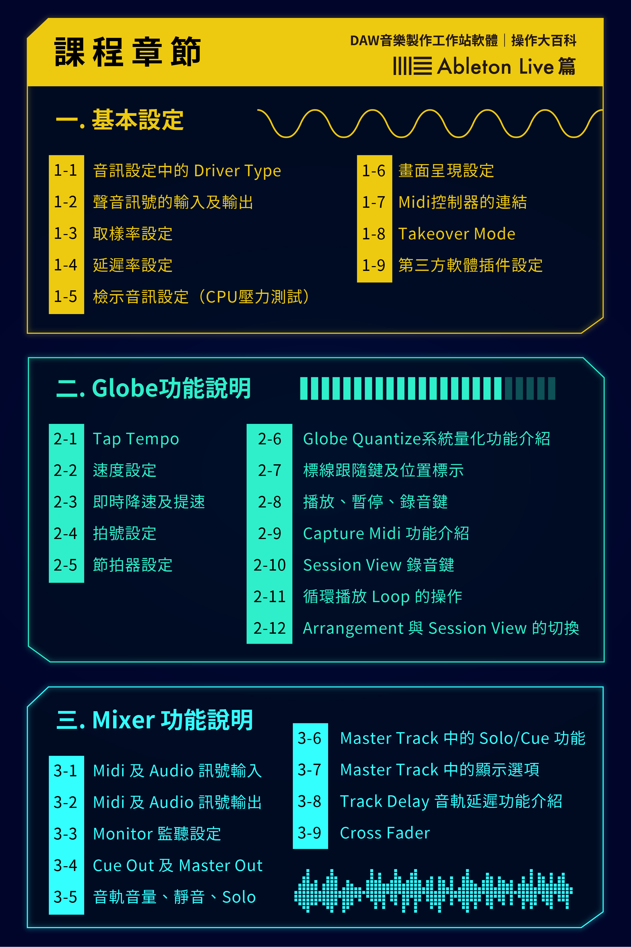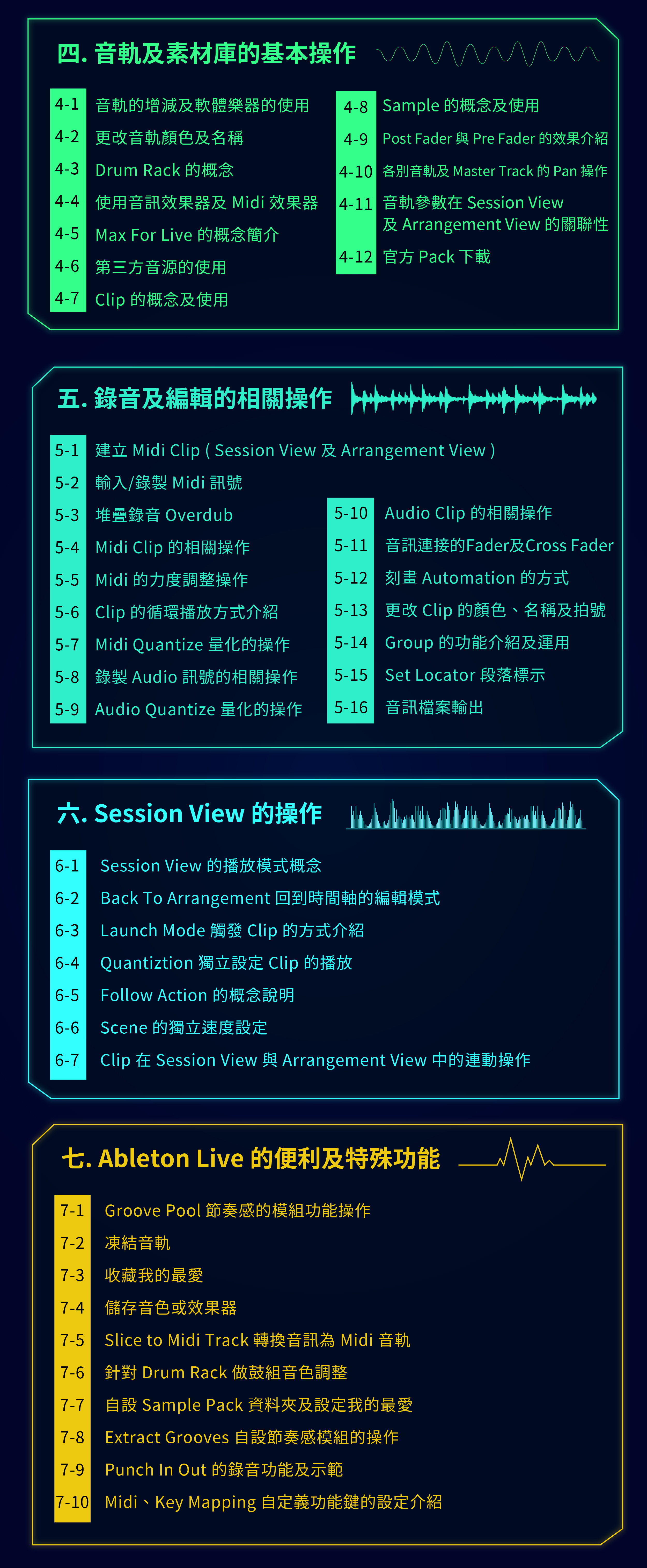 無需任何音樂背景知識,只要對 Ableton Live 軟體操作、數位編曲音樂製作等有興趣的朋友,都可以從這堂課開
