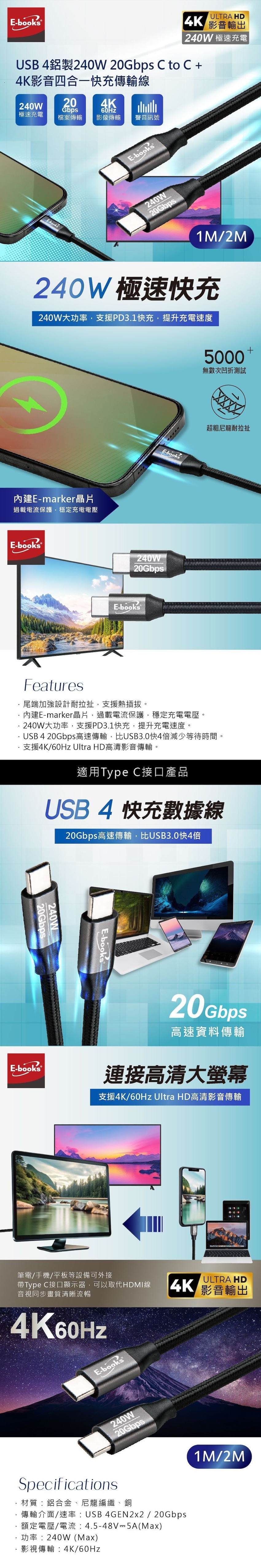 內建 E-marker 晶片,過載電流保護,穩定充電電壓。