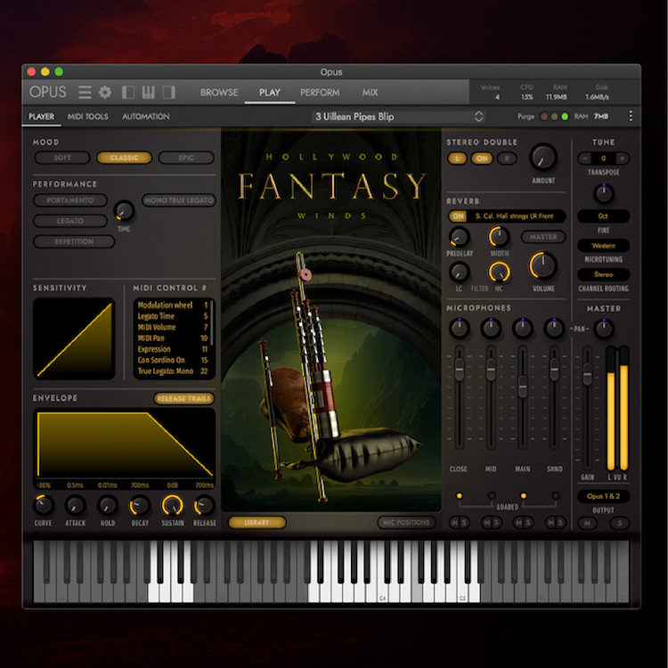 Hollywood Fantasy Winds 中的許多樂器在現代管弦樂團中沒有對應之物:響亮的愛爾蘭風笛、溫潤的陶笛,還有華麗的愛爾蘭哨子等等。你會發現,即使在宏偉的場景中,它們也能夠完美融入,並帶有豐富而令人陶醉的特質,這是傳統樣本庫所無法比擬的。風樂器是奇幻民間音樂的生命之源,能夠熟練地描述從熱鬧的商業街道到橫越未知土地的奇幻冒險的一切。整個收藏深深根植於凱爾特音樂文獻之中,或許是 Hollywood Fantasy Orchestra 中最獨特而引人入勝的樂章。