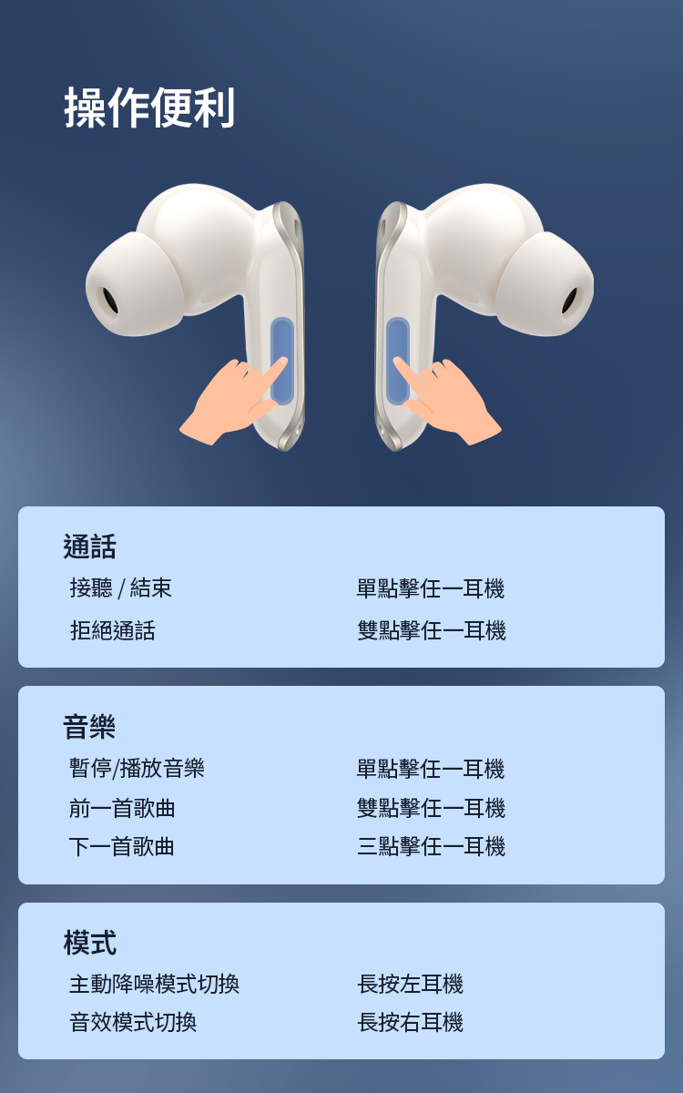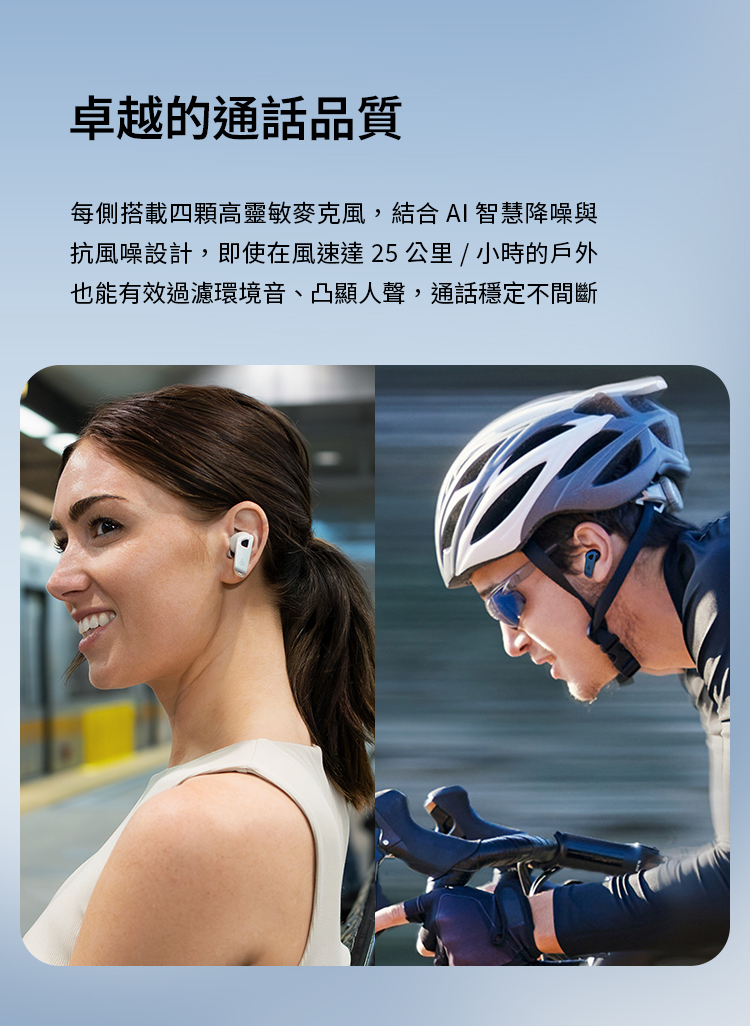 寬頻多通道 -50dB ANC 主動降噪 |環境音模式|防風噪