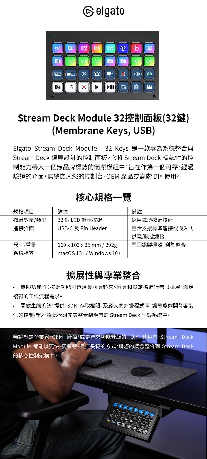 配備 32 顆可自訂 LCD 按鍵