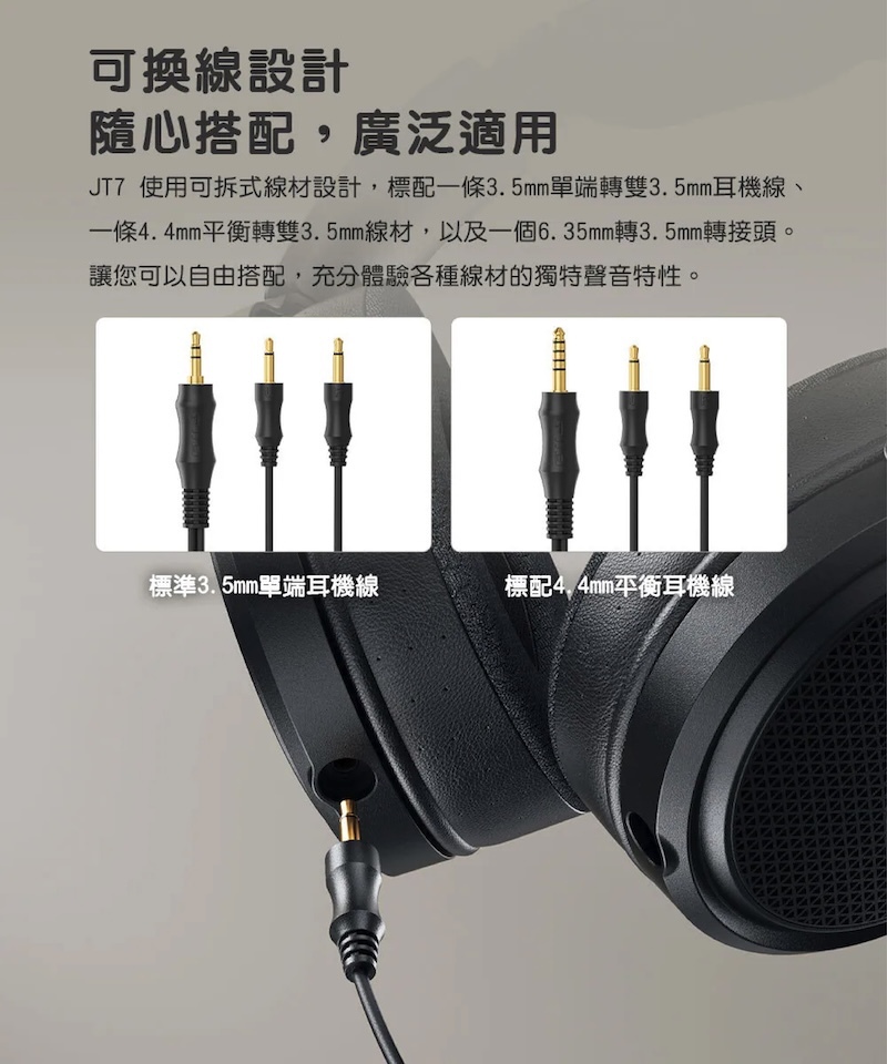 標配 3.5 mm、4.4 mm 耳機線