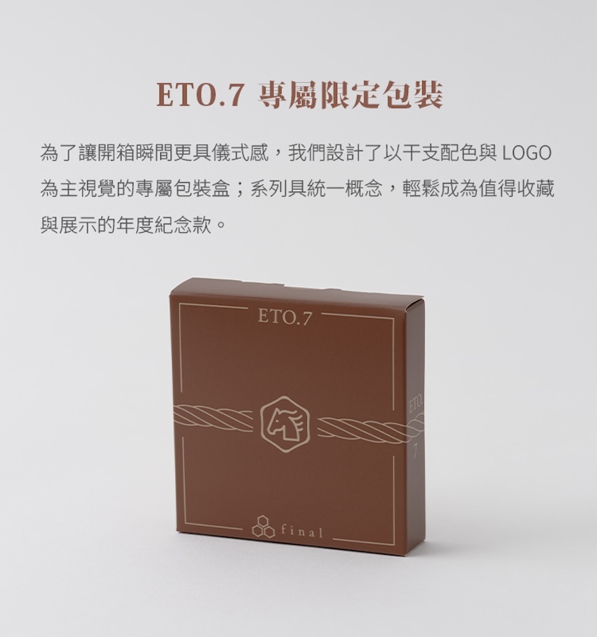 全新推出的「ETO.7」不論在聲音、外觀或包裝皆採用專屬設計,迎接每年「收集系列」的樂趣與期待。