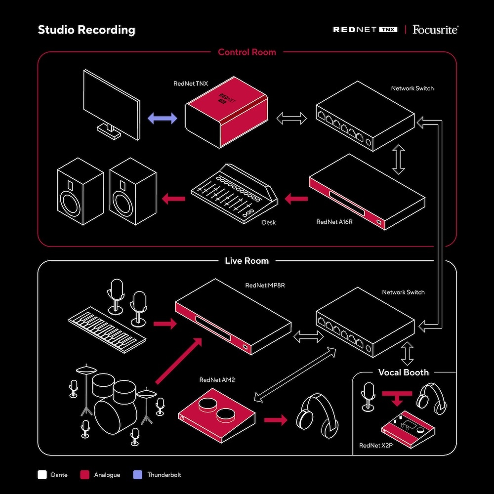 低延遲、靈活且具備高通道數的 Thunderbolt™ 與 Dante® 介面