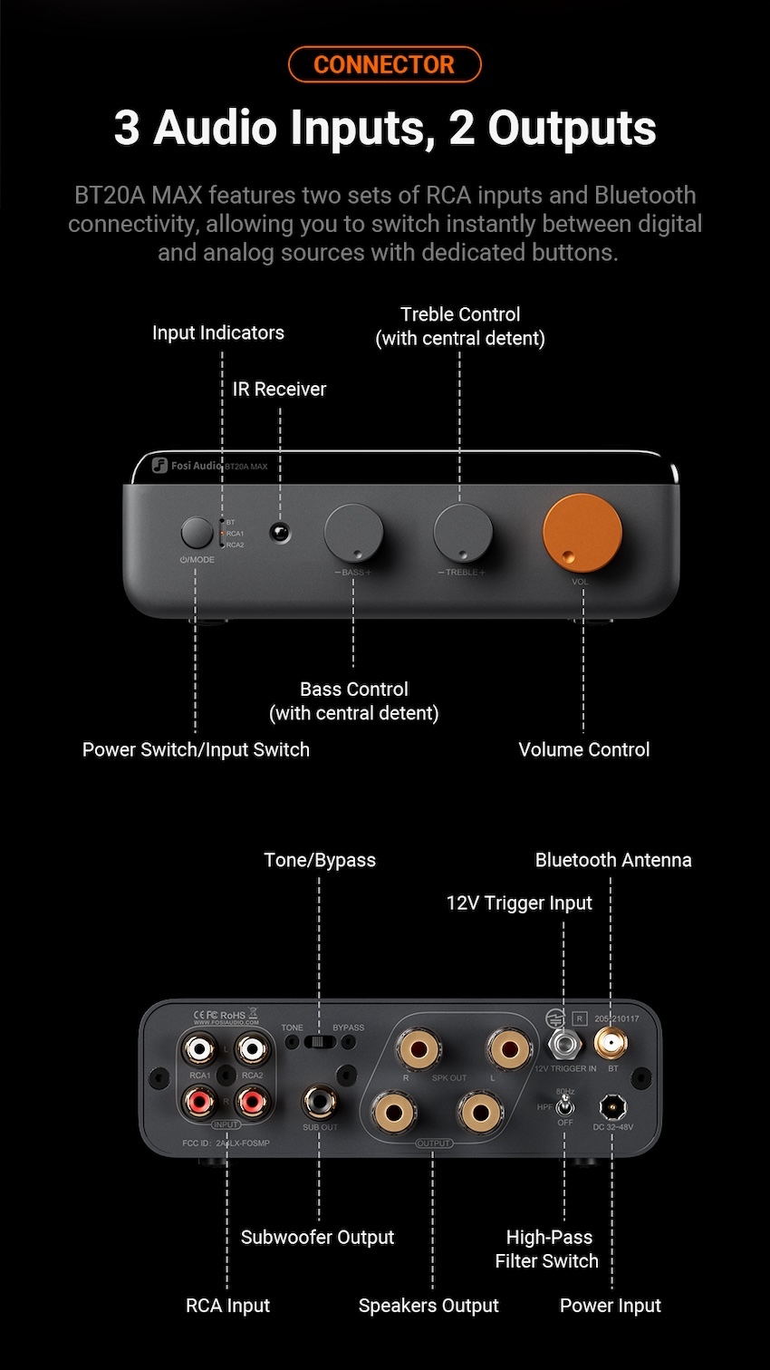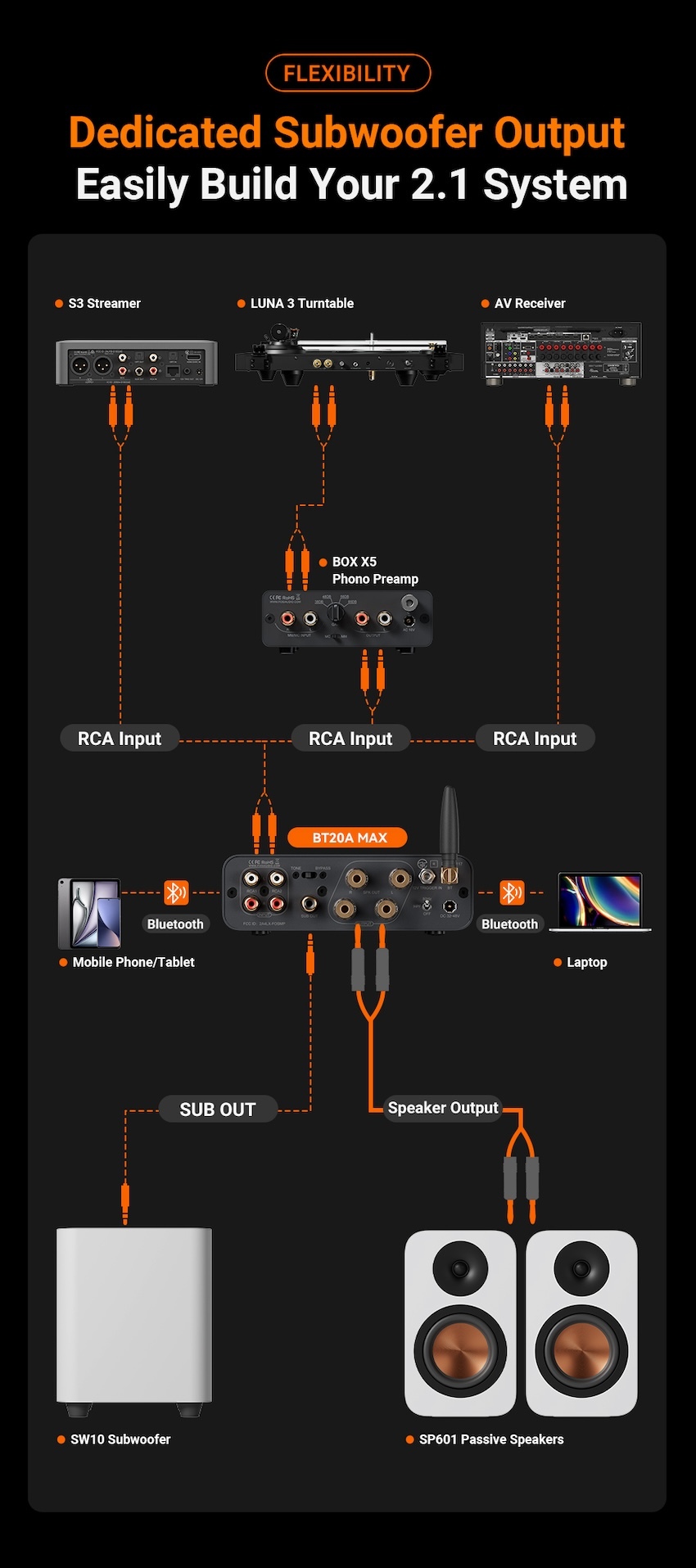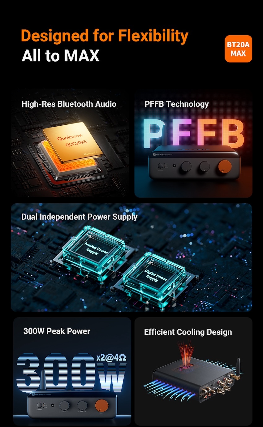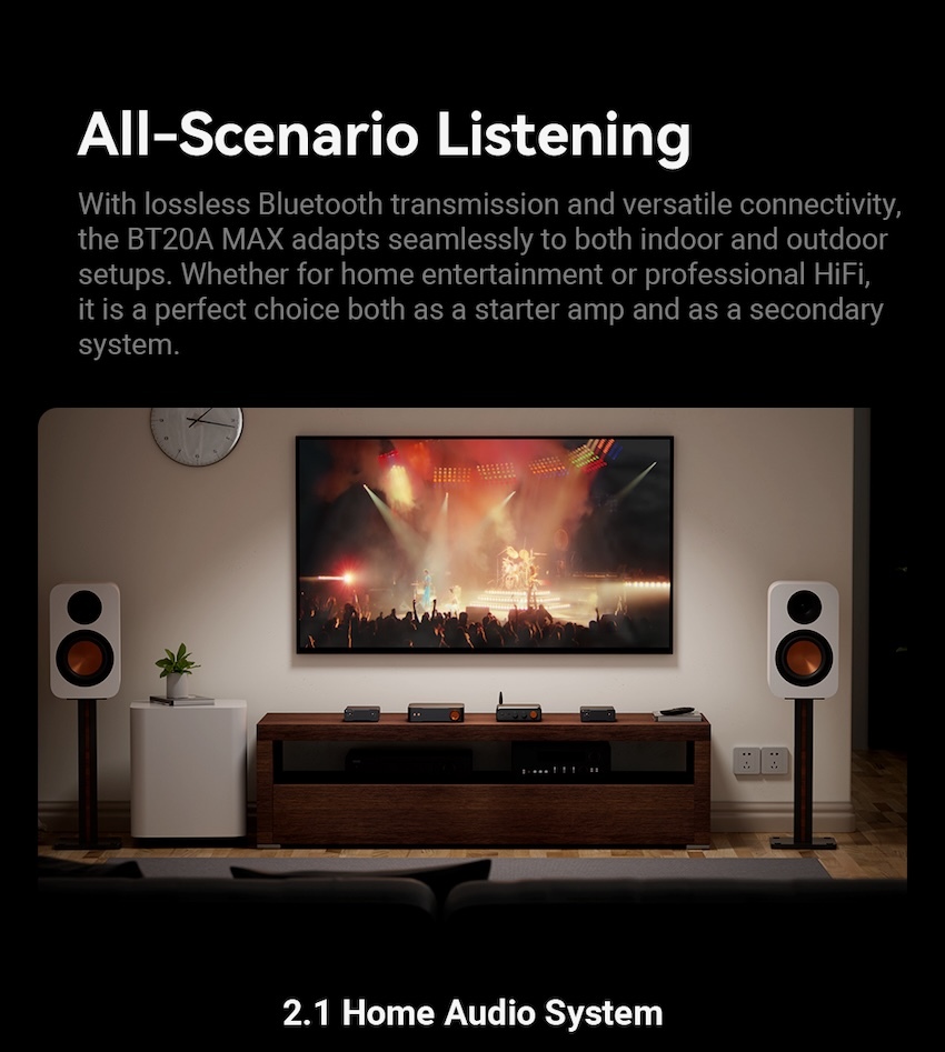 提供高輸出功率的 2.1 聲道輸出