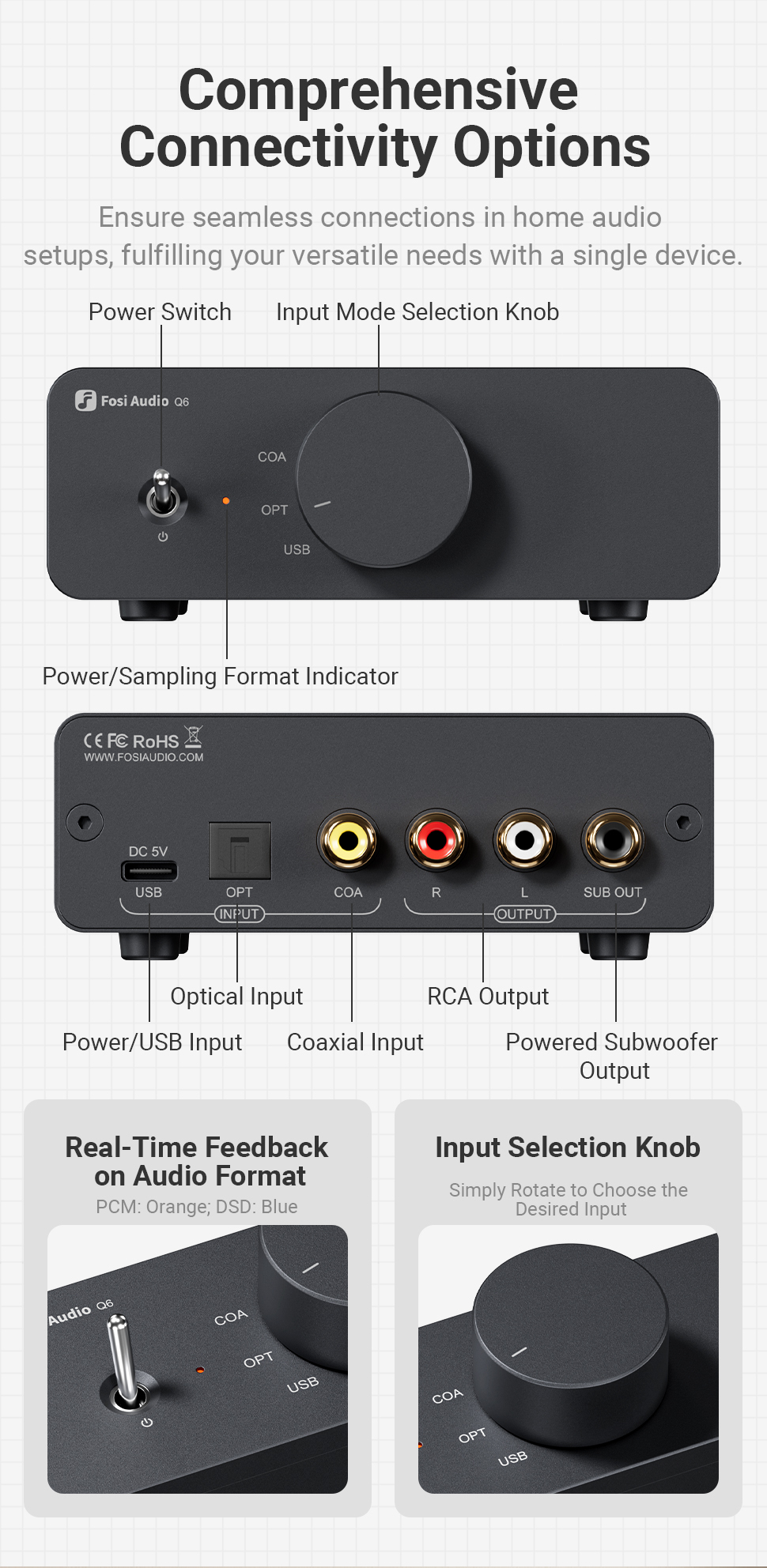 支援 USB 32bit / 768kHz、DSD512 及 光纖 / 同軸 32bit / 192kHz