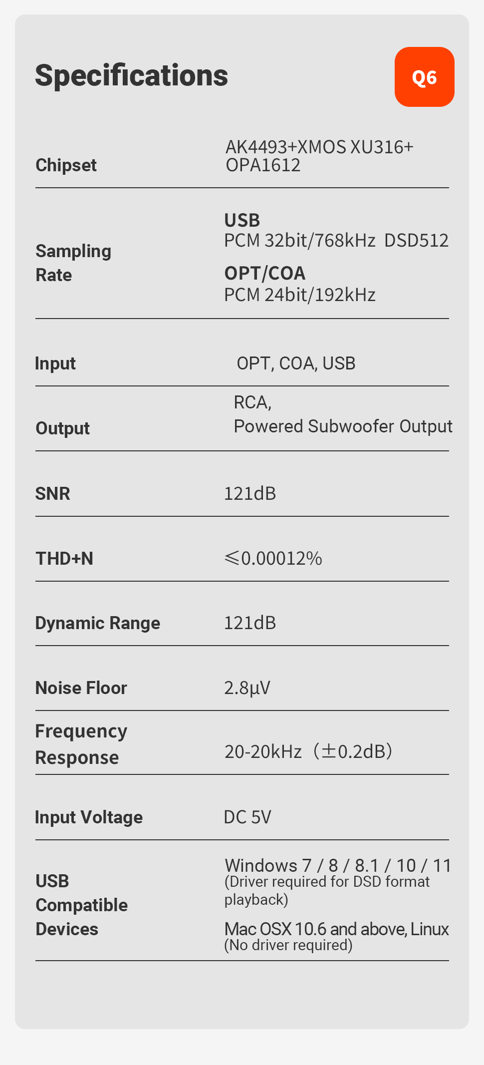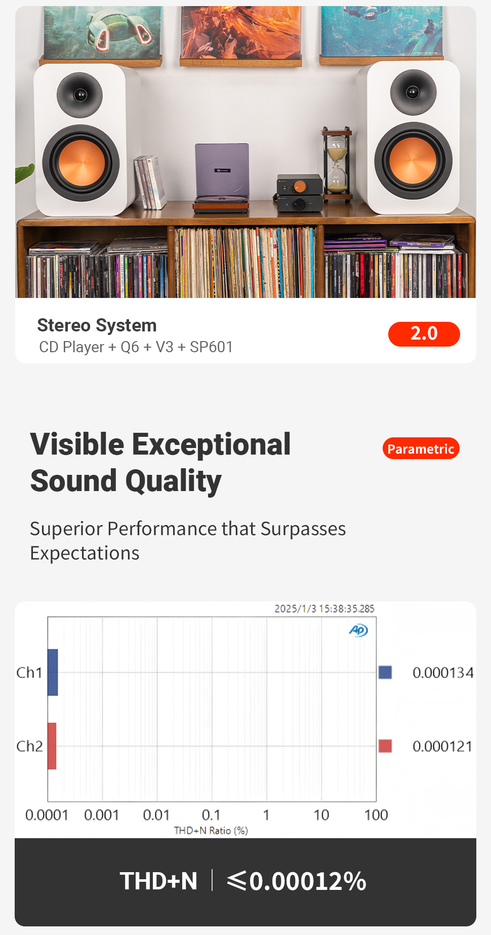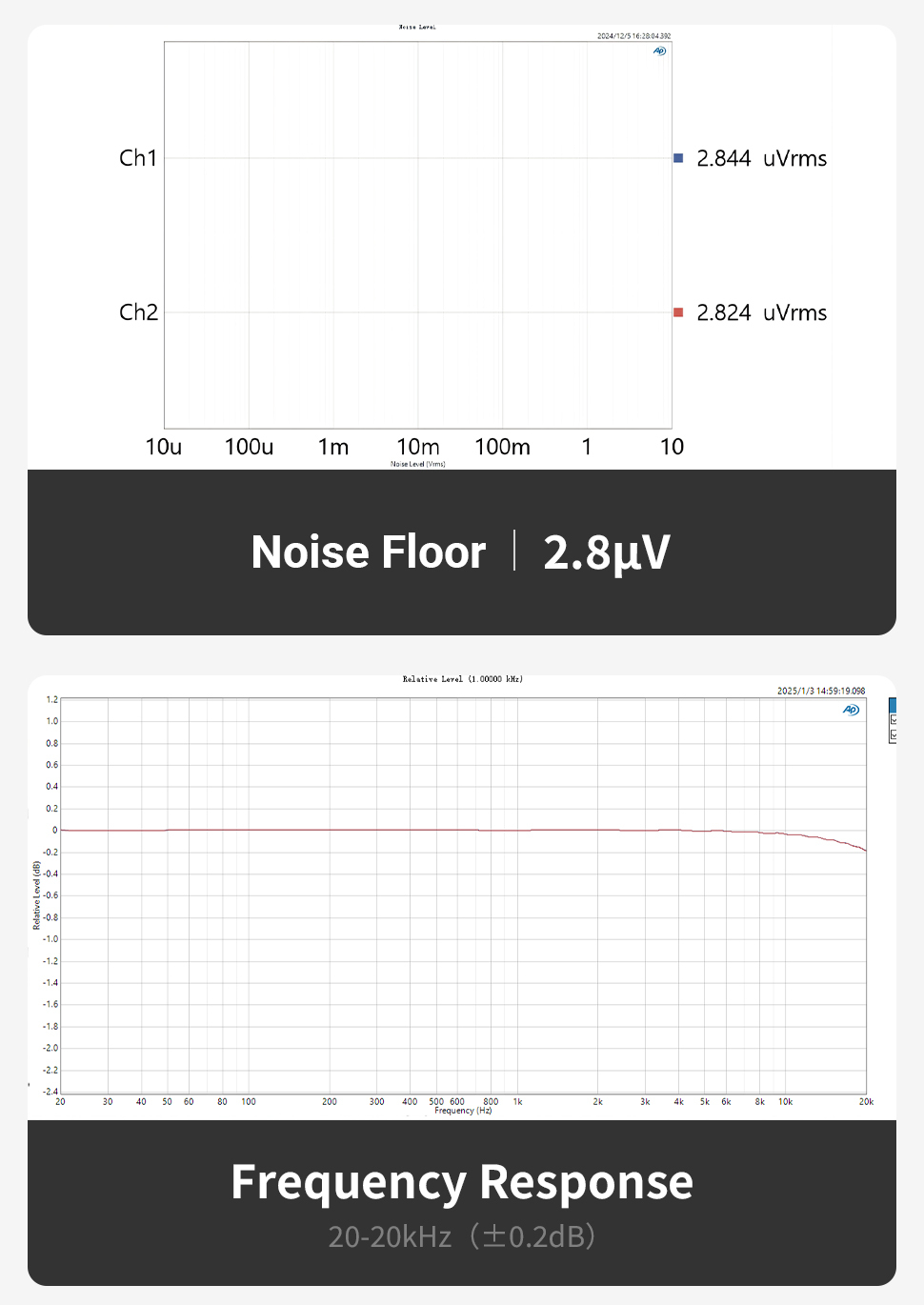 SNR ≥121dB、THD+N <0.00012%,呈現高動態與低失真