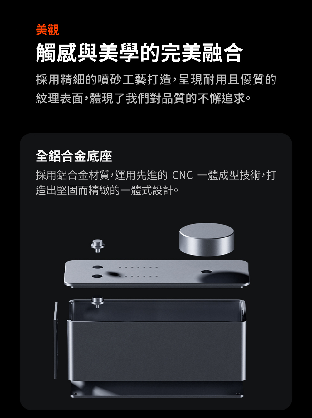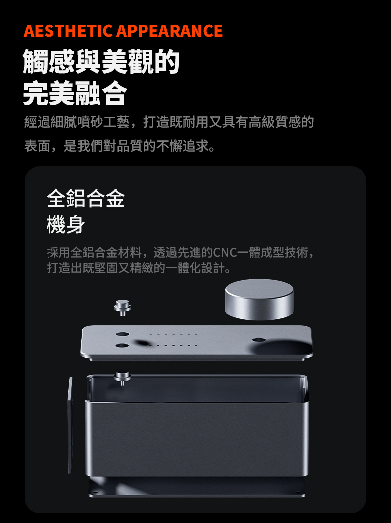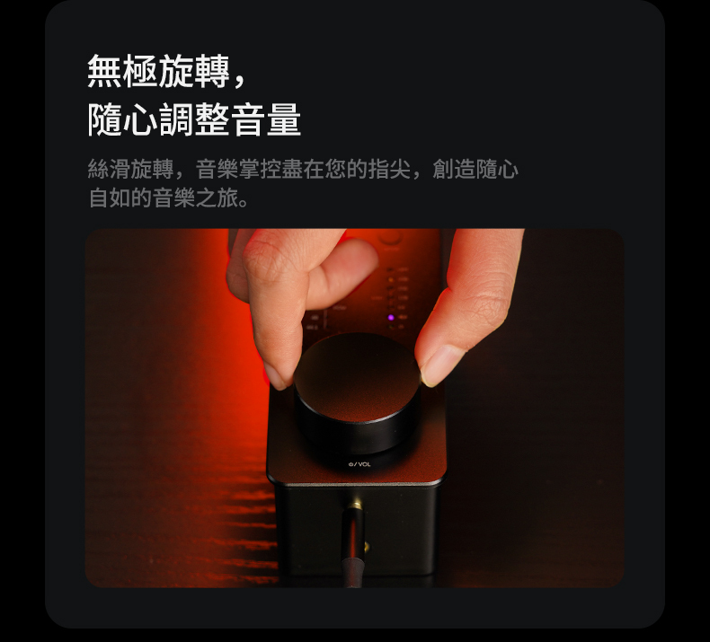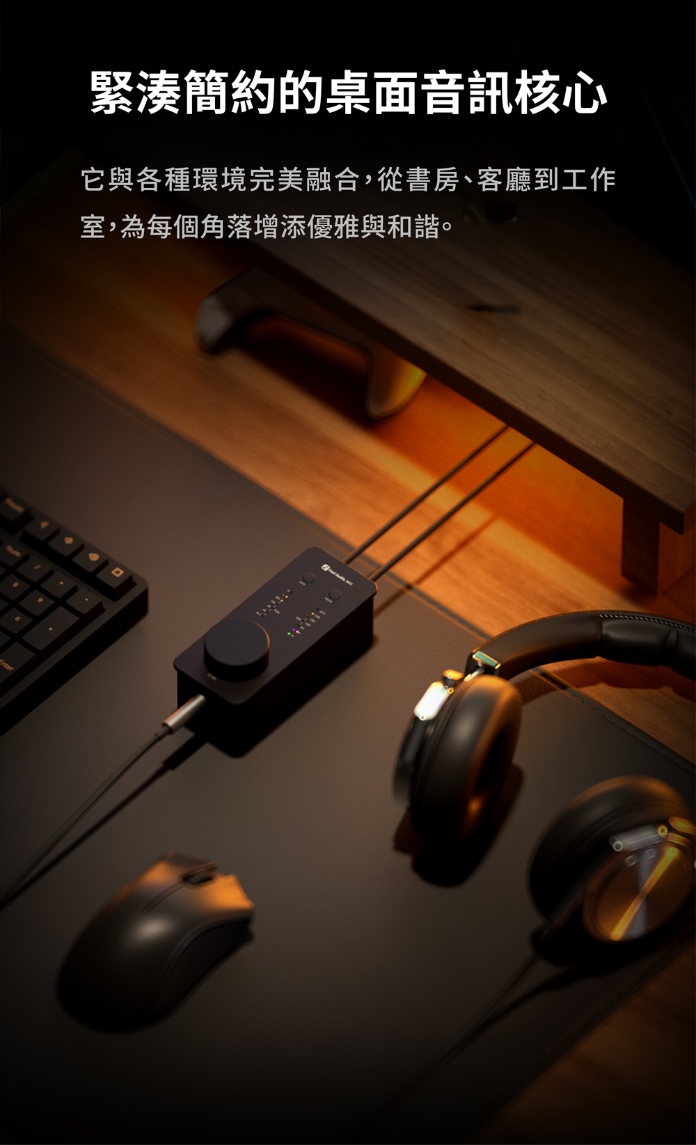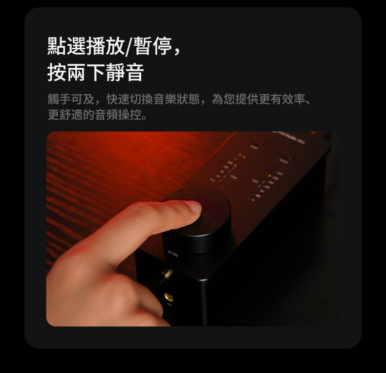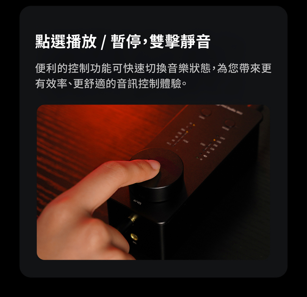 鋁合金機身、輕巧設計,適合桌面擺放與搭建簡潔音響系統