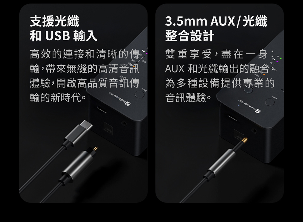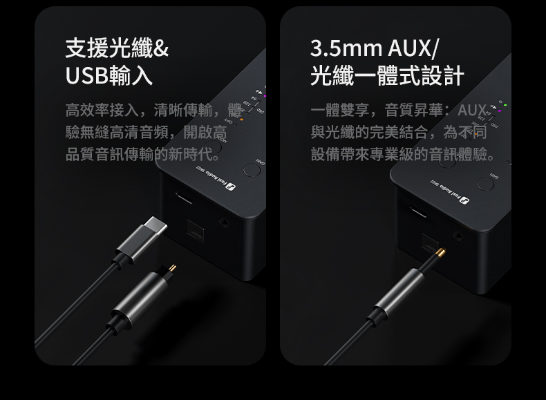 多種輸入介面(USB/光纖)支援靈活搭配各類音訊設備