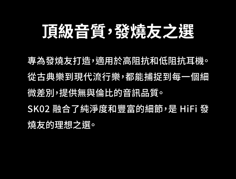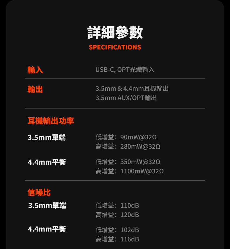輸出功率強勁,能驅動高阻抗耳機仍保持清爽無失真音質