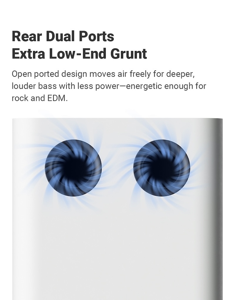 雙低音反射孔、堅固無噪聲結構設計