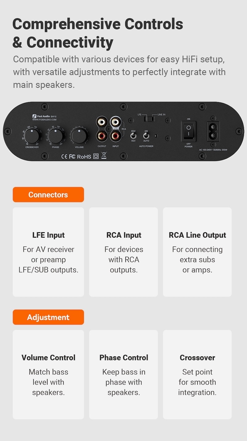 LFE 與 RCA 輸入、支援擴展、精確控制