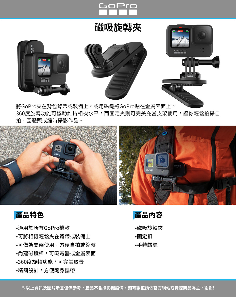輕鬆將GoPro 夾在背包的背帶、裝置等處,以拍攝獨特視角