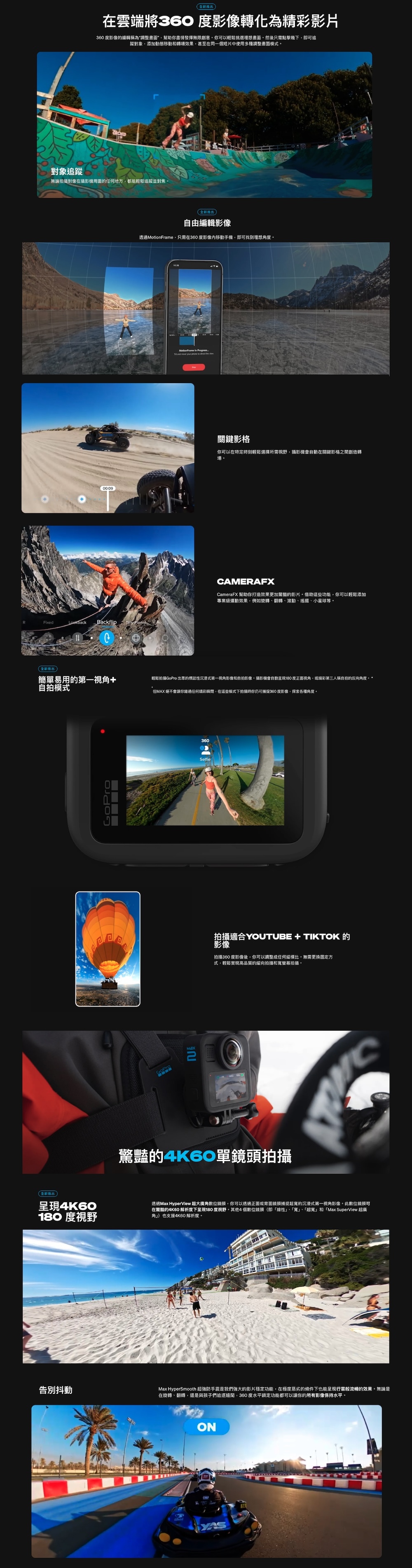 多種拍攝模式:POV、自拍、單鏡 4K 模式,支援橫/直構圖