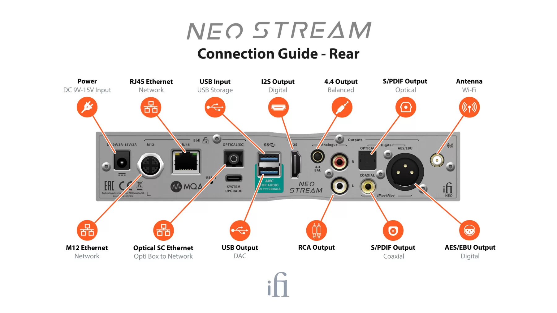 NAA操作 – 真正的愛好者?NEO Stream可以作為網絡音頻適配器運作。它將通過Wi-Fi或Ethernet電纜接收的音頻