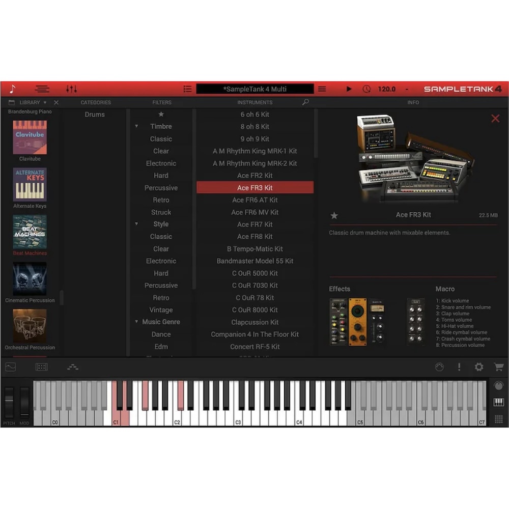 無論您是在創作電子音樂、流行音樂還是任何其他風格,Beat Machines 都將成為您的得力助手。從 Ace Tone 到 TR-808、TR-909 再到各種異國風格的鼓機,每一款標誌性機器的聲音都得到了精心捕捉,讓您可以隨心所欲地打造自己的獨特音樂。