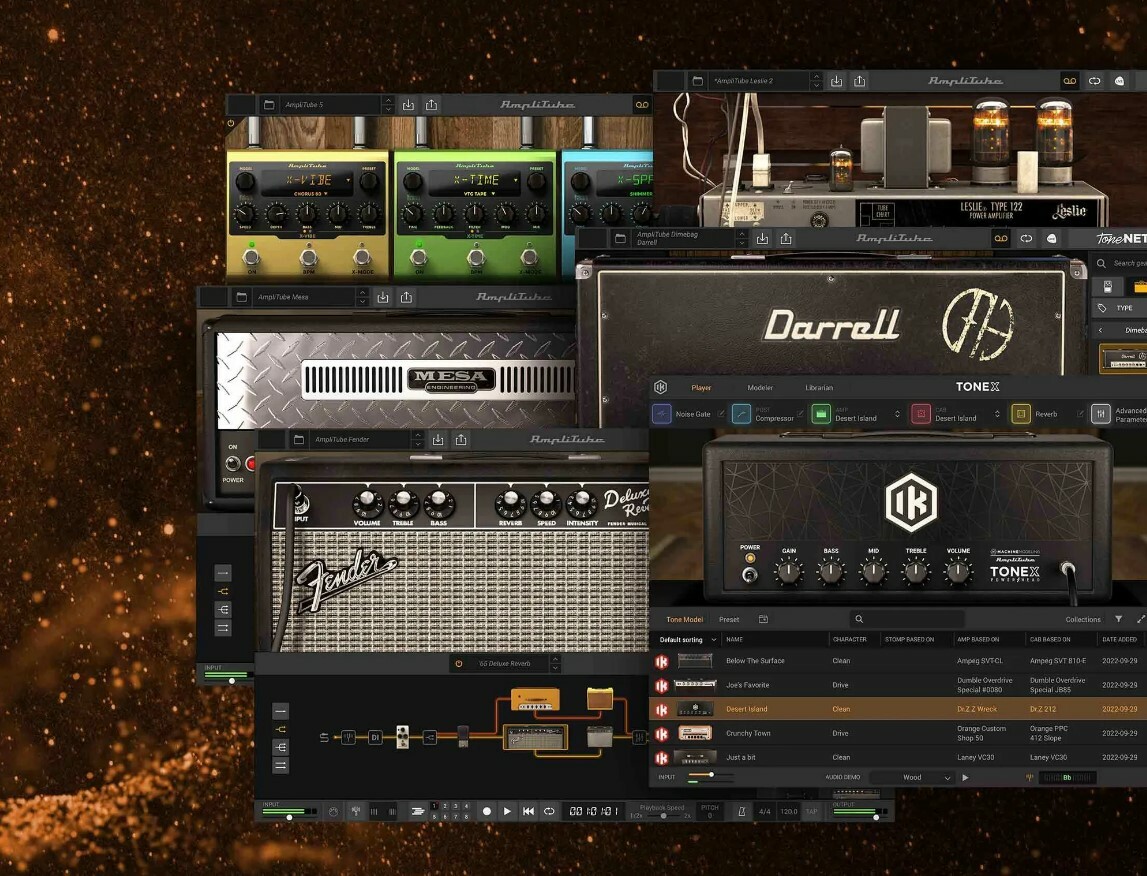 * 經典吉他低音:AmpliTube 5 包含 18品牌/藝術家音色,AmpliTube TONEX MAX 提供 1,100+ 高級音色模型,
