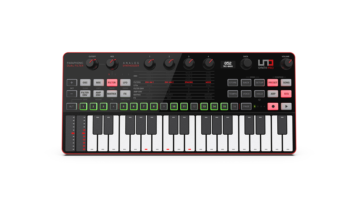 UNO Synth Pro 憑藉其獨特的雙濾波器、3 振盪器和聲設計、256 個預設、64 步音序器、工作室級效果、擴展