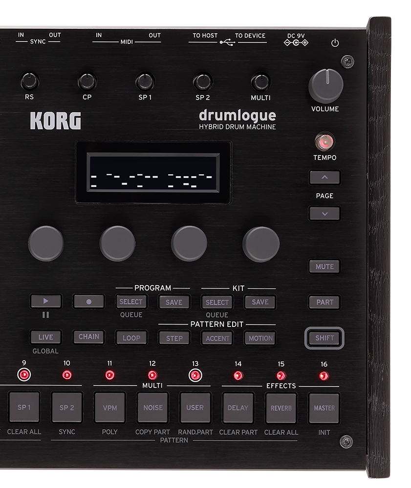 Drumlogue 是為了提供鼓組節奏的終極類比聲音與出色的效果器而生。採用傳奇 KORG 類比合成器團隊工程師