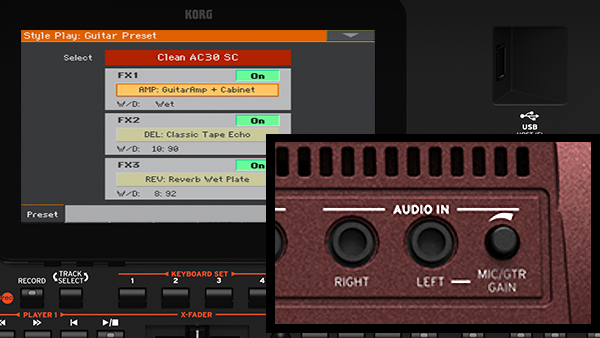 可以讓你將吉他連接到琴背面的專用吉他輸入端,來添加踏板式和錄音室級的效果器。