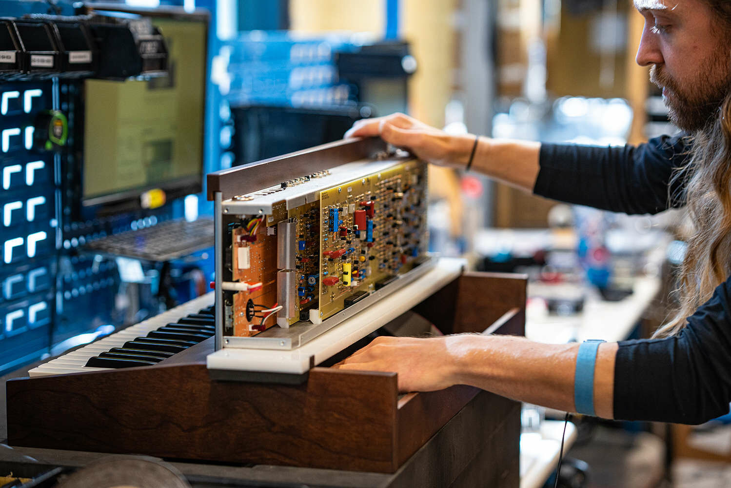 自發明半個多世紀以來,Minimoog Model D 在北卡羅來納州阿什維爾的穆格工廠重新投入生產。它是一款出色的