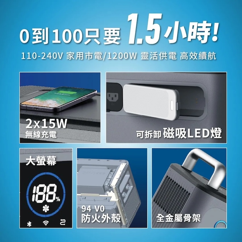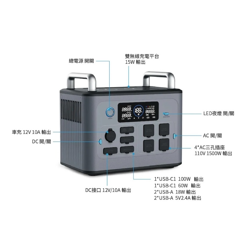 支援雙 15W 無線充電與多組 AC / DC / USB 接孔