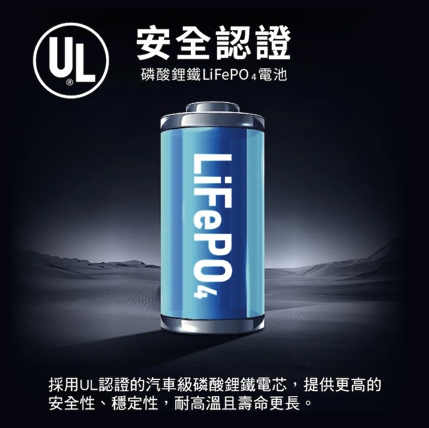 採用安全 UL 認證的 LiFePO₄ 電池,壽命超過 3500 次循環