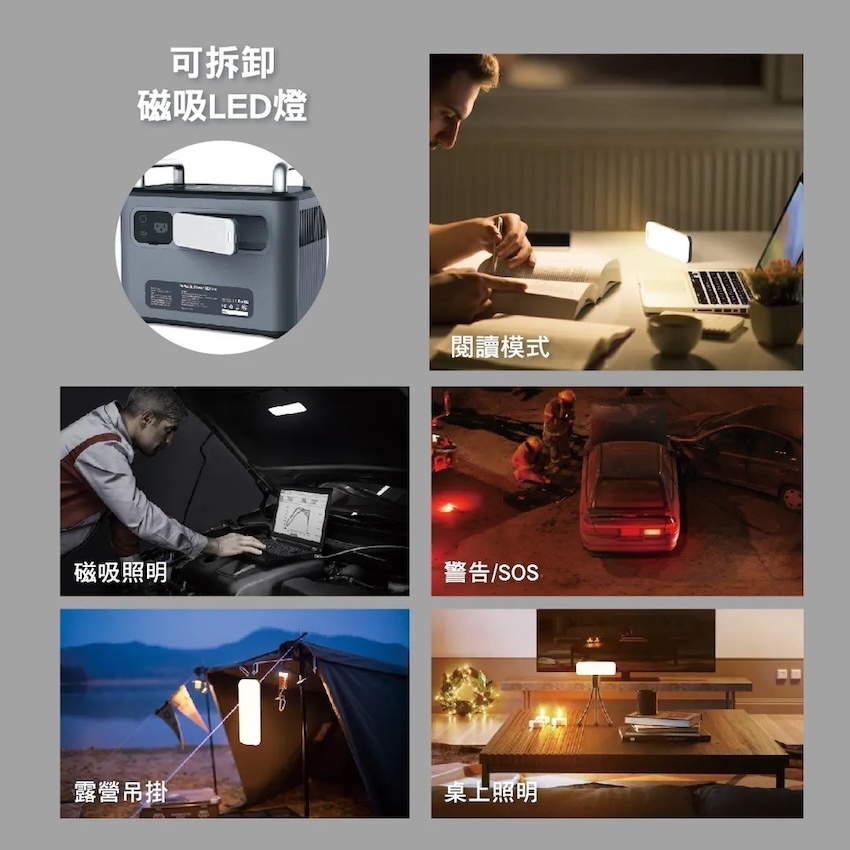 內建可拆卸磁吸 LED 燈,多模式照明與 SOS 緊急功能