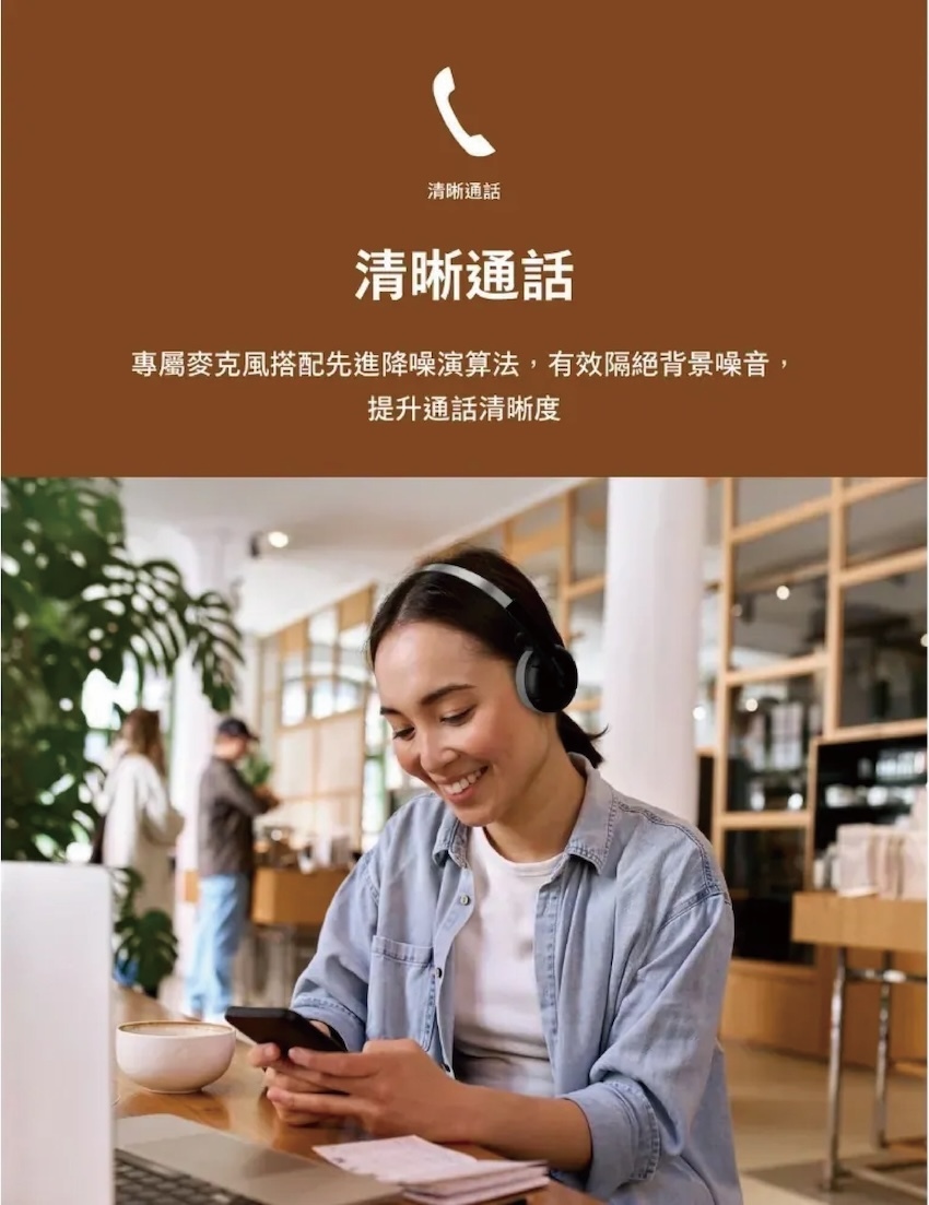 清晰通話+降噪技術,吵雜中也能自在對話