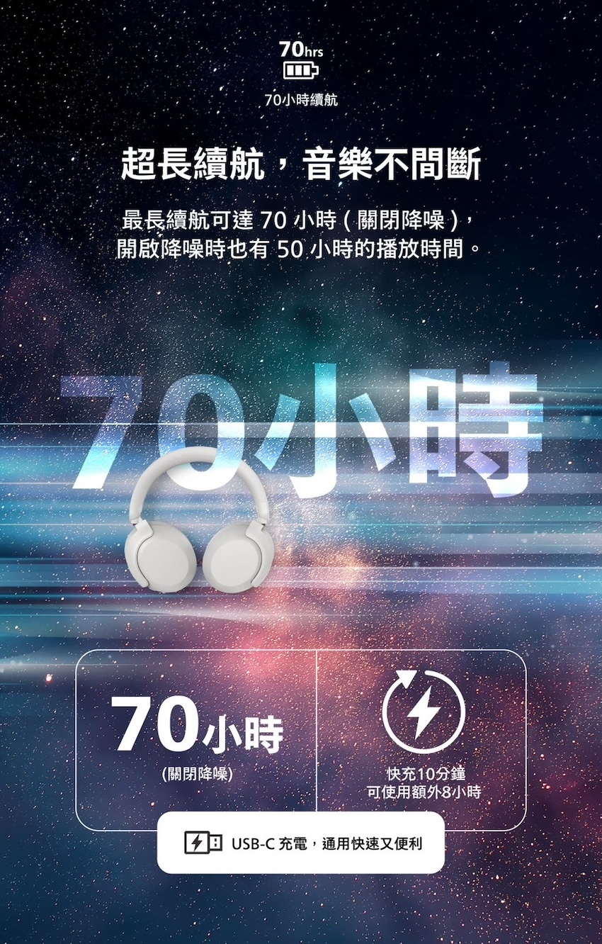 最長可達 70 小時播放續航