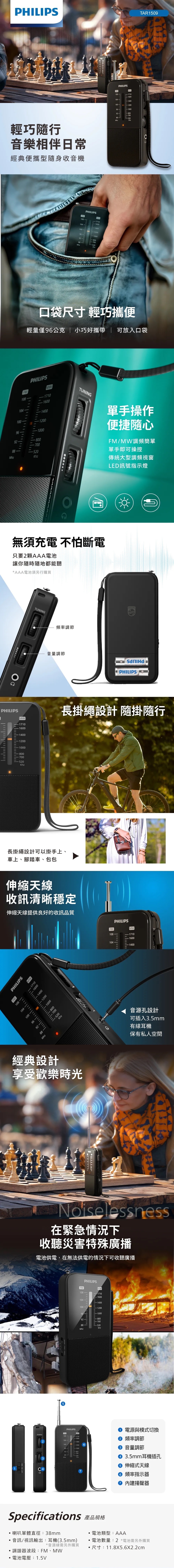 類比 FM/AM 收音機,長型天線提供更好的收訊品質