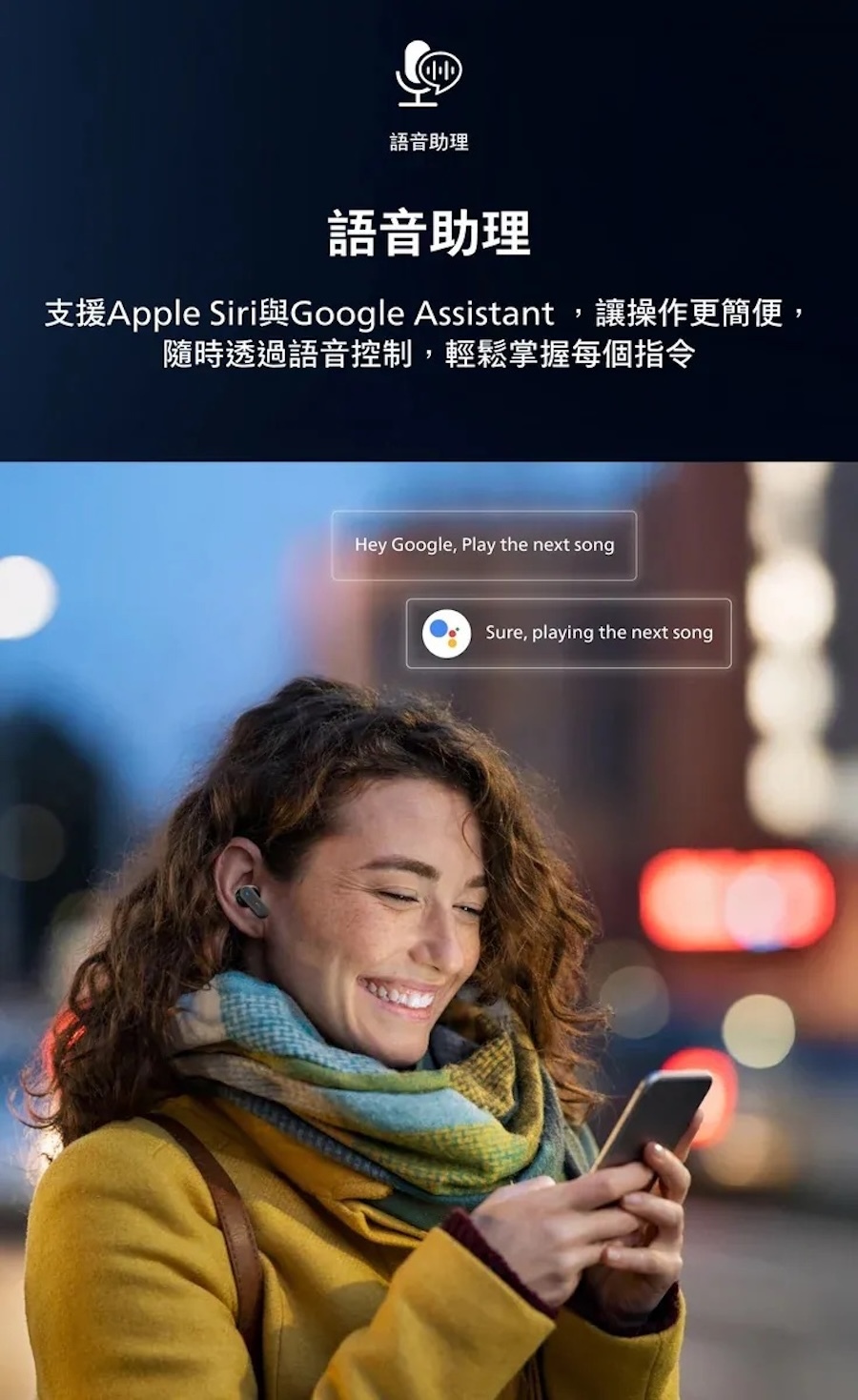 搭配動態低音,即使低音量也能呈現絕佳音效。