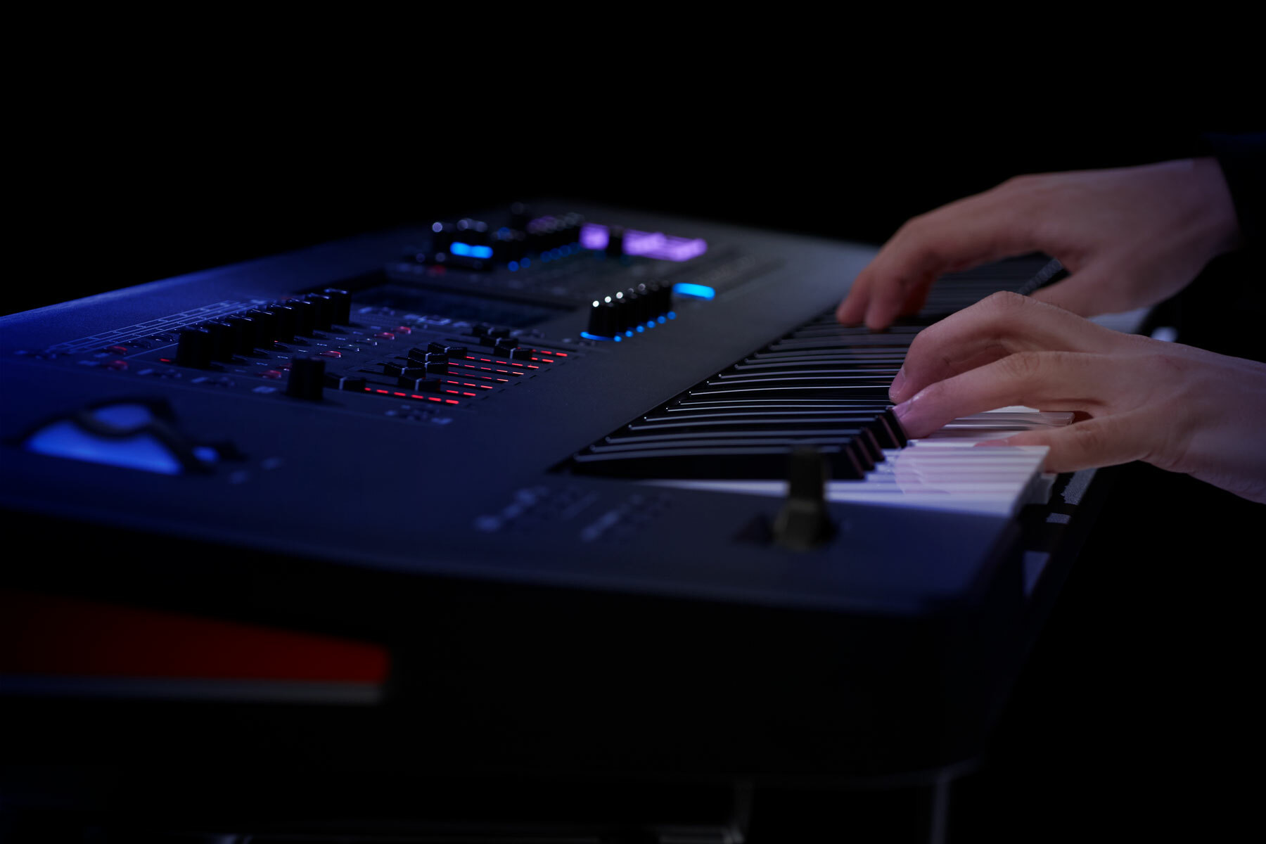 己情感,是至關重要的。FANTOM-0專注於演奏的體驗實感,展現在它沉浸式的鍵盤機制到它眾多的演奏控制裝置。