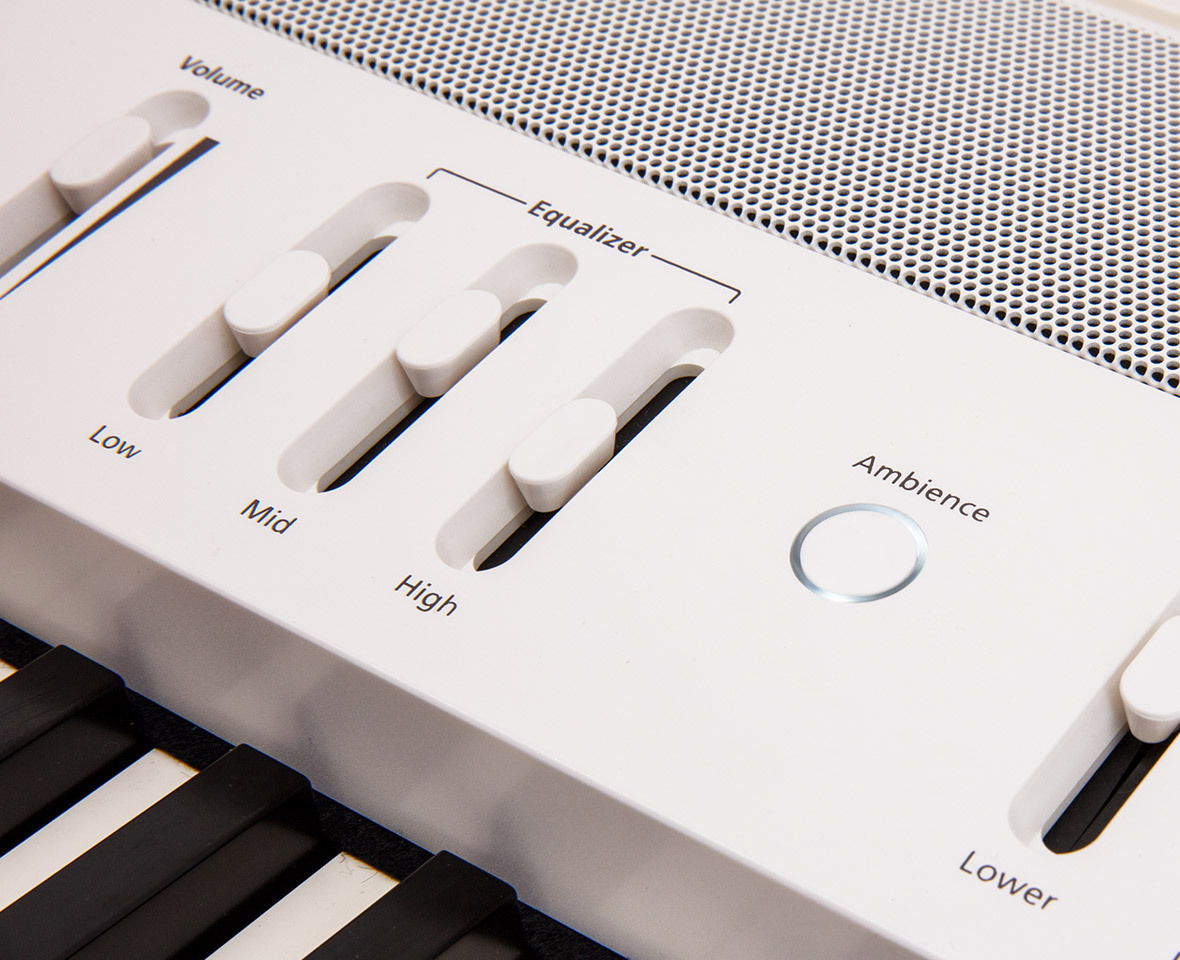 FP-60X 採用 Roland 備受讚譽的 SuperNATURAL Piano 鋼琴音源,來捕捉您演奏風格的每一抹細膩表情,鉅細靡 遺展現從含蓄的弱音演奏到鏗鏘有力的強音。更進一步,您可以透過等化器面板調整低、中,和高音域的音調,並 使用內建 Piano Designer 來微調每一個音符的音調,深入雕琢和自訂您的專屬聲音。FP-60X 還新增 My Stage 功 能,其聲音結合了特選的鋼琴音色和音場類型,提供從琴房到大型音樂廳等各種場地的沉浸式演奏體驗。
