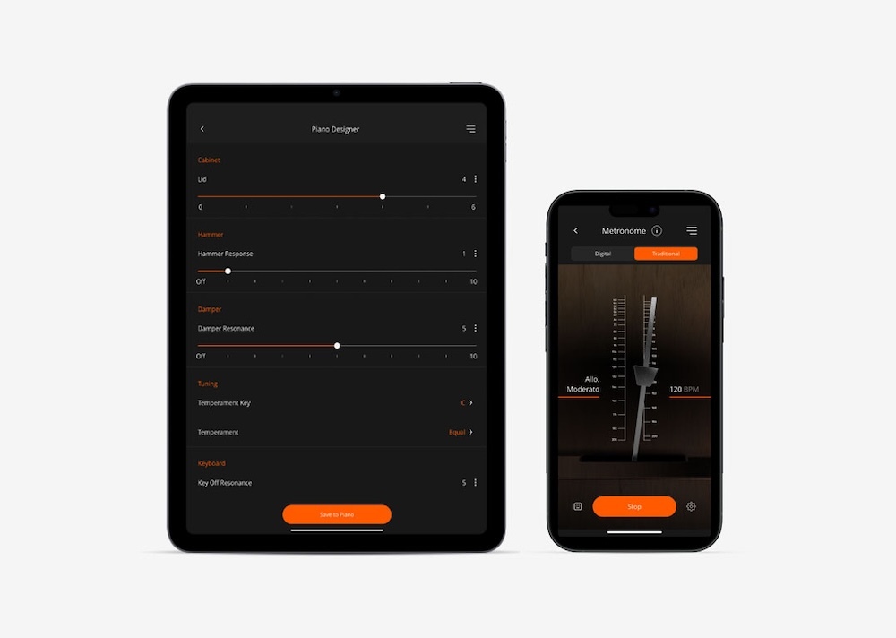 Roland Piano App 透過智慧型手機或平板的無線遠端操作,提升 FP-E50 操作體驗。透過觸控方式輕鬆調整一些基本功能,例如鍵盤分鍵、移調和其他進階功能。使用強大的l Piano Designer 自訂聲音。在 Roland Cloud 上瀏覽歌曲並喚出數位樂譜,以按照自己的進度學習。用視覺節拍器鍛鍊您的節奏感。透過有目標性的活動日記、閃卡遊戲等來激勵自己的進步。