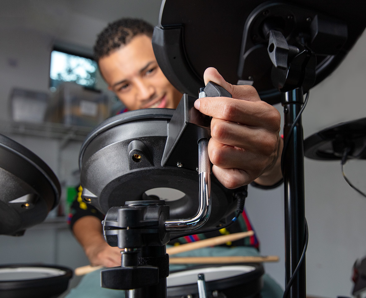 小鼓和中鼓打擊鼓使用 Roland 經典的雙層可調鬆緊度的網狀鼓面