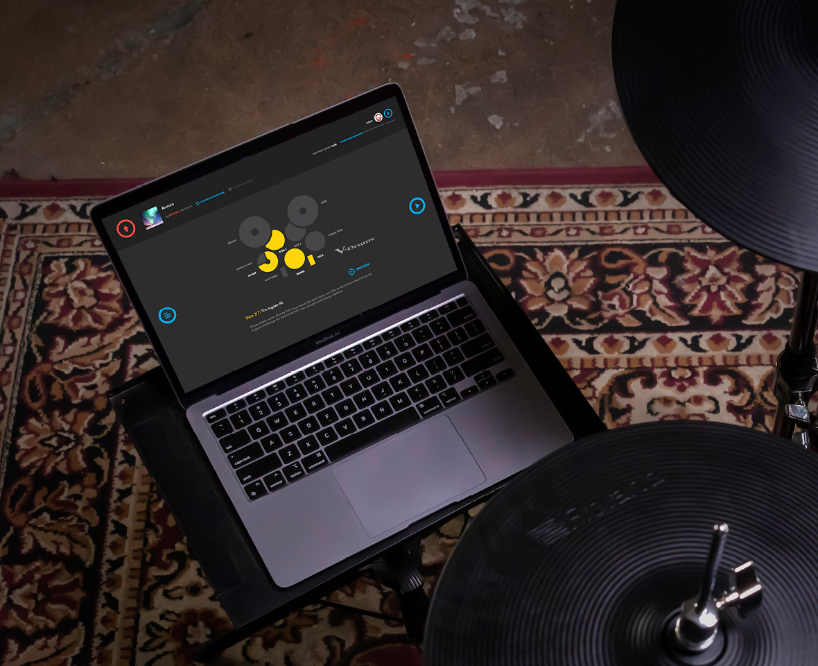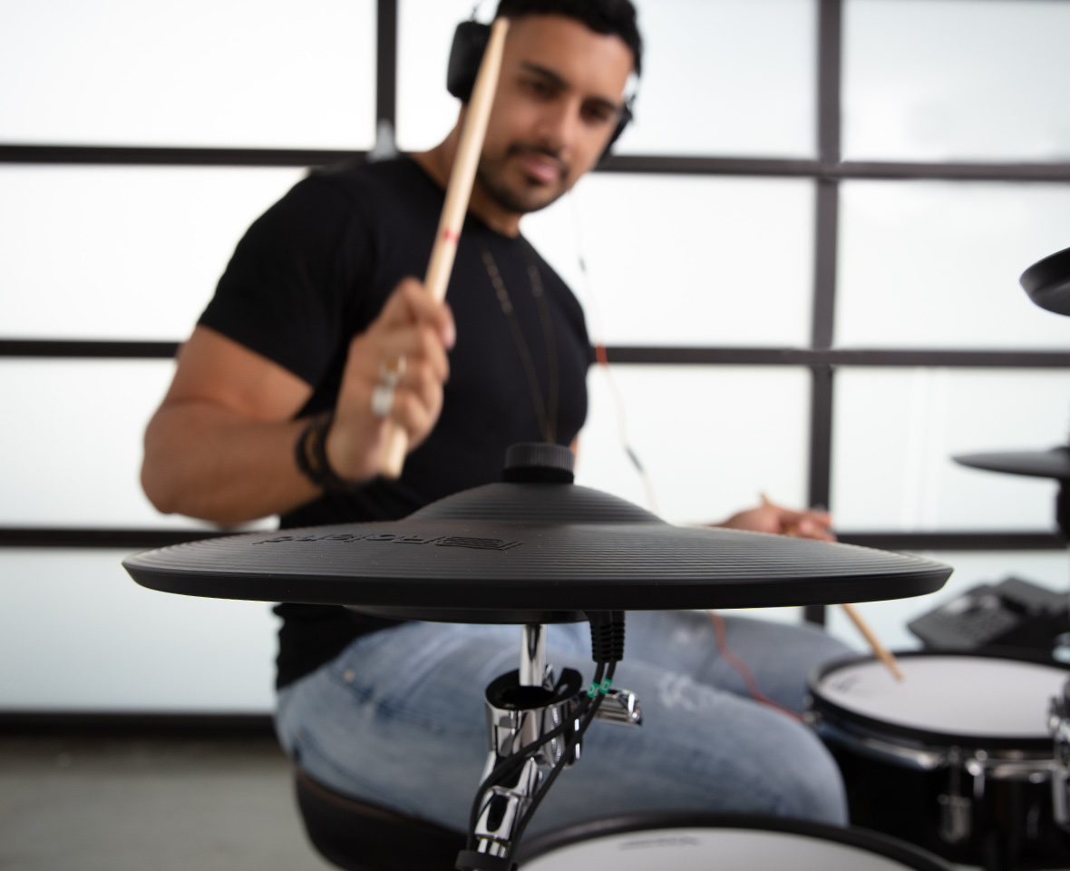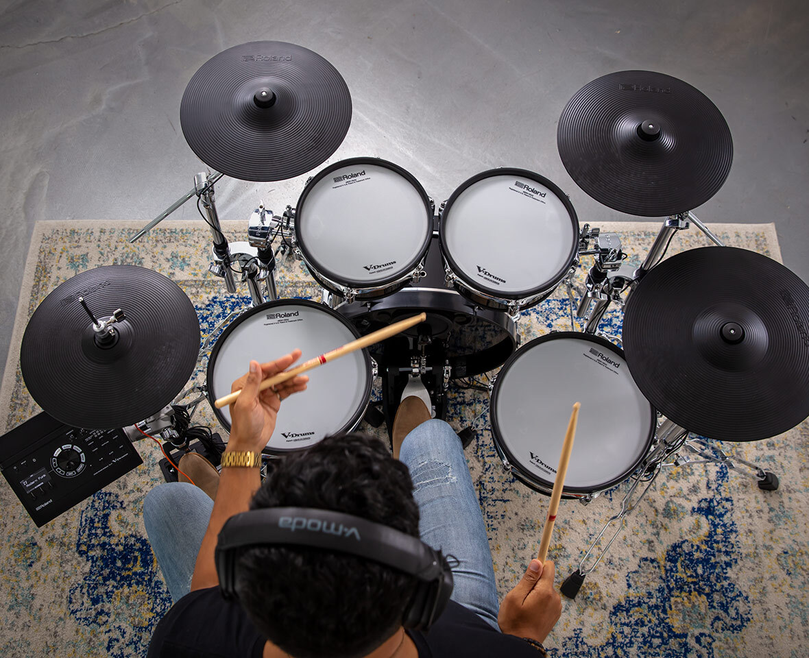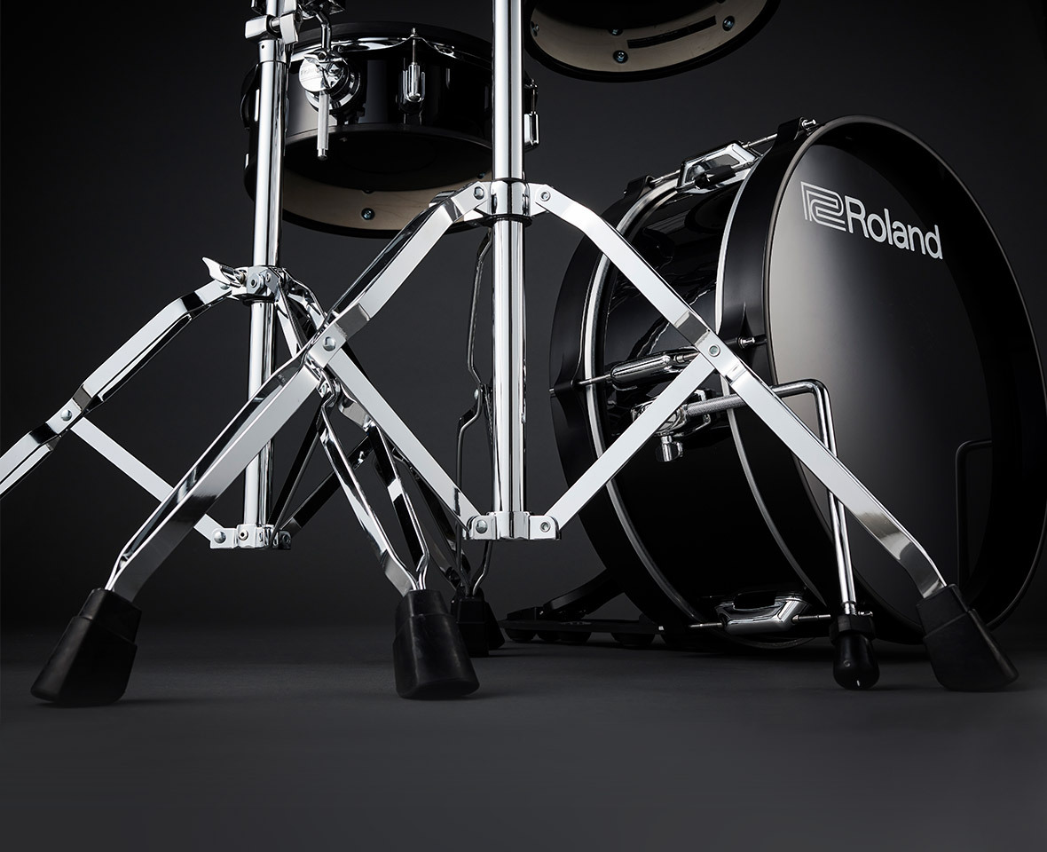省空間的 V-Drums Acoustic Design 套鼓,具有淺鼓身鼓殼和升級的雙支撐鍍鉻鼓架