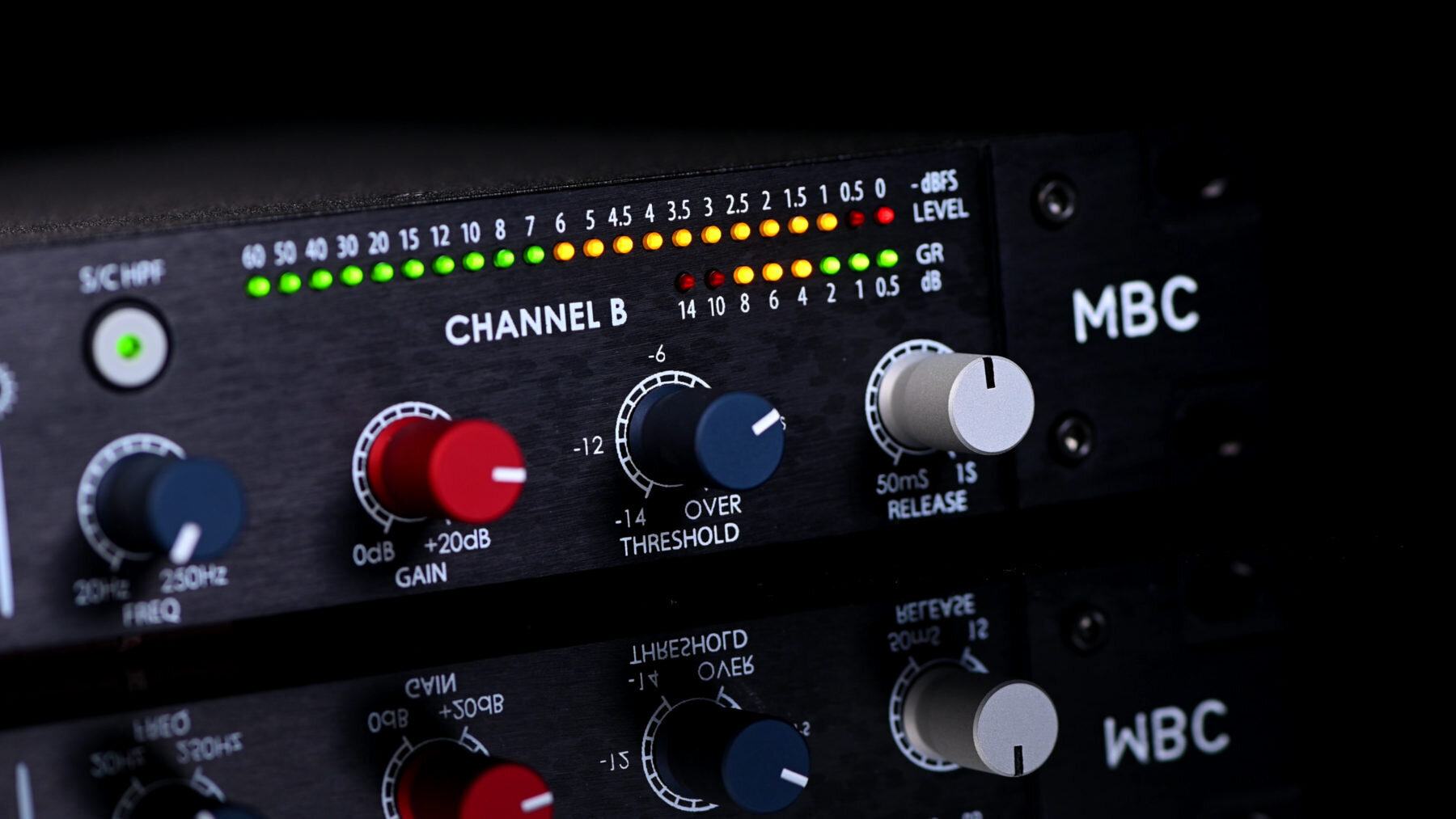 To further adapt the sound of the limiter, we’ve added a number of controls to fine-tune its response: The built-in sweepable side chain high-pass filter minimizes the limiter’s reaction to low frequencies to let your bass come through full-force, the class-A line amp stage adds up to 20dB of ultra-clean gain, and the MBC can even be used as a dual mono design (rather than stereo linked) for high-fidelity instrument tracking purposes.