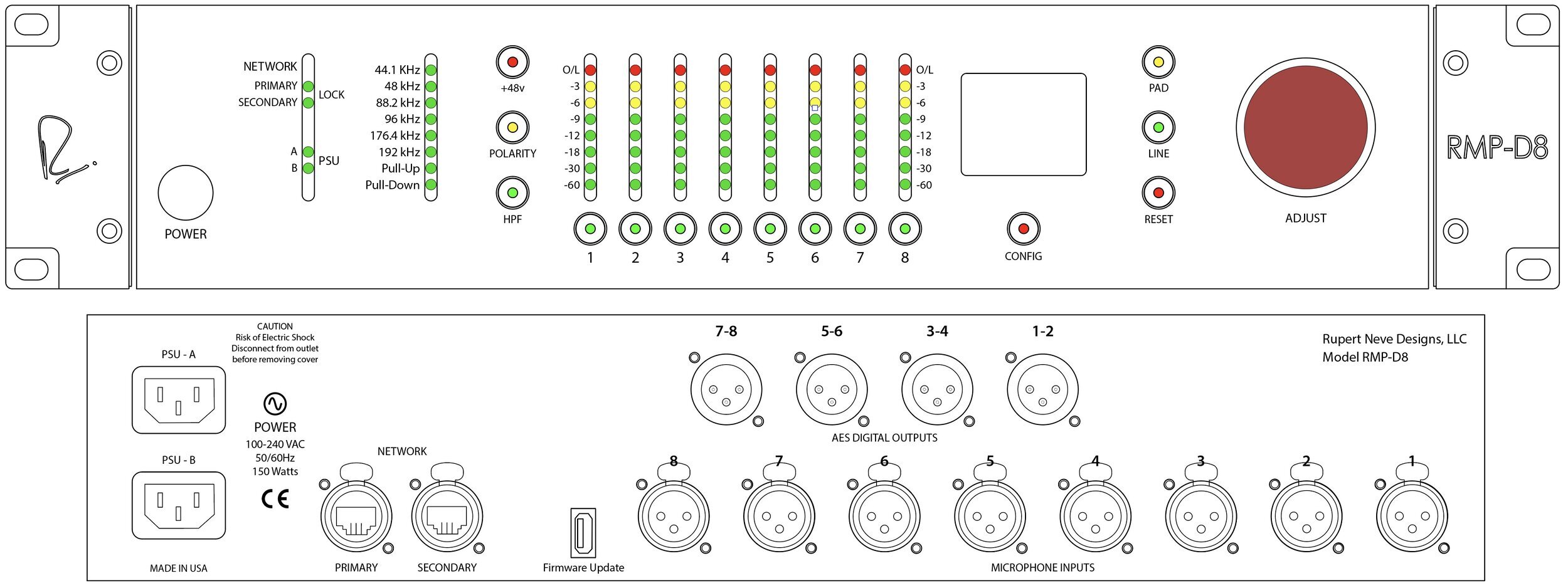 For many years, the world’s leading live sound engineers have chosen Rupert Neve Designs as some of the only analog equipment to accompany their digital touring rigs. With mastering-grade 24-bit 192kHz converters and full Dante integration, the RMP-D8 finally offers the live sound world something that studios have always coveted: the sound of Rupert Neve Designs.