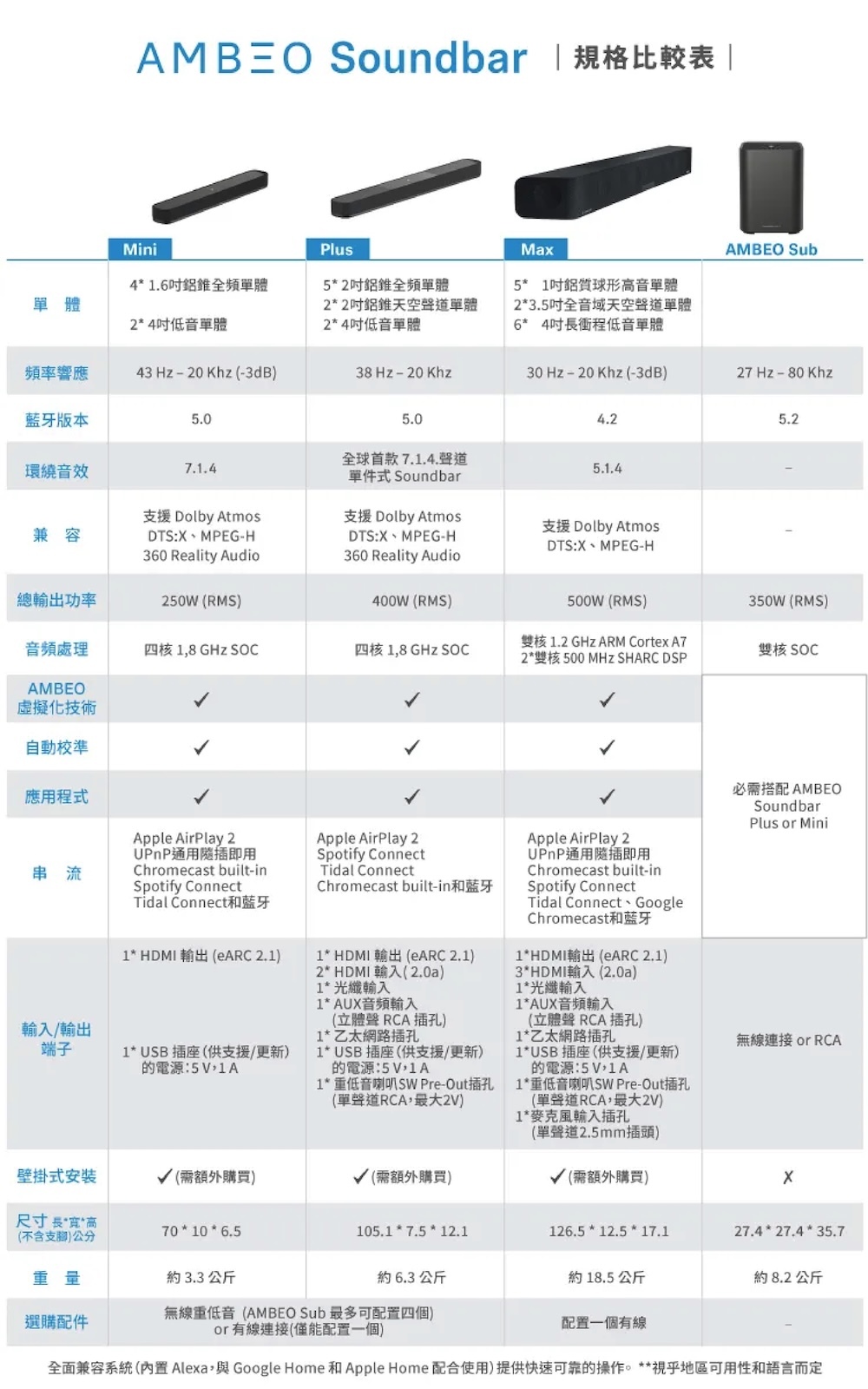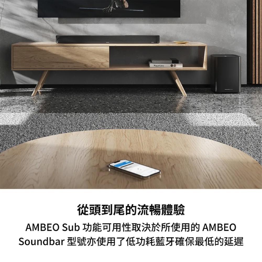 無線連接,搭配 AMBEO Plus 多達四個低音串聯 (Max 需有線串聯一個)