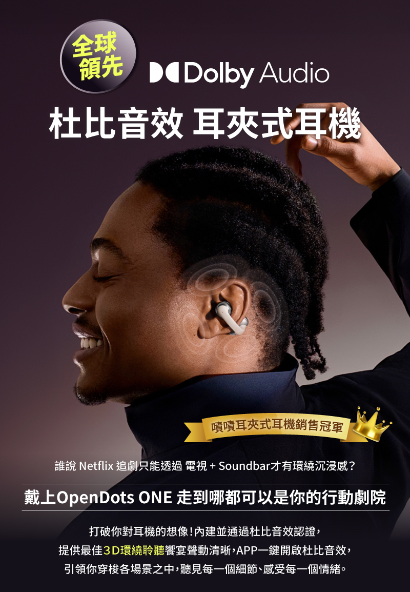 全球首款「Dolby Audio 杜比音效」耳夾式耳機